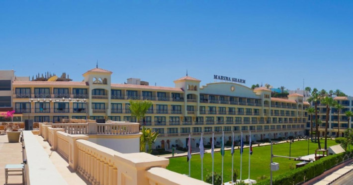 About 200 m from the hotels own public sandy beach is located the aparthotel Marina Sharm Hotel ****. The nearest restaurants and bars can be found within 120 m. The old town is around 800 m away. You can find a range of shops and a supermarket direAbout 200 m from the hotels own public sandy beach is located the aparthotel Marina Sharm Hotel ****. The nearest restaurants and bars can be found within 120 m. The old town is around 800 m away. You can find a range of shops and a supermarket directly on your doorstep. There is a shuttle between the hotel and the airport (for a fee). Nearby there is a disco, a leisure park and a theatre which offer entertainment in high season. The beach is patrolled by a lifeguard. Here, there are sun loungers and cushions available. At the beach there is a bar serving refreshing drinks. The seasonally air-conditioned, GPS-verified hotel has a 24h reception (check-in is possible around the clock), a lobby bar, Wi-Fi (for a fee), internet access (for a fee), a lift, cash machine, a hairdresser, a jacuzzi, a first aid kit as well as parking spaces (limited and for a fee). In the outdoor area you will find a garden as well as a seasonally heated pool (open all year). There is also a separate childrens pool. Furthermore, you can relax outdoors on a roof terrace. Inside the hotel you can use an indoor pool. You can store your valuables in the safe, and your luggage in the hotels storage room. For your entertainment, the hotel offers a theatre and a disco. For very young guests, highchairs can be provided. There is also a laundry service available at an additional cost to customers. Ironing equipment can be borrowed at the hotel. For your comfort, in addition to the concierge service the hotel page will ensure you are looked after. If necessary, you can contact the medical centre at any time (for a fee). For conventions and other business meetings, the hotel offers EXTRA_FEE (auditorium-style) conference rooms with tables as well as scanner. A photographer can also be ordered from the hotel for business events. If you want to explore the holiday region, you can use the motorbike rental service close to the hotel (extra fee). At the hotel reception, tickets are offered for excursions in the area. For guests on their honeymoon, the hotel has special offers such as personalised rooms/articles, rooms with a particularly romantic location and view, special honeymoon packages, romantic dishes in the restaurant, a present, a basket of fruit or flowers in the room. In your hotel, a lot of focus is placed on sustainability. This includes waste segregation in the rooms, the hotels own recycling bins, the provision of soap and shampoo dispensers, ecological meals, a central room air-conditioning and environmentally-friendly cleaning. The hotel requires that all guests pay a deposit upon arrival. Euro/Master Card is accepted as means of payment. Due to its barrier-free facilities , such as a sliding door in the entrance area, an automatic hotel door, barrier-free entrances and wheelchair accessible rooms, the hotel is also suitable for wheelchair users. Catering As catering services the hotel offers all-inclusive, half board, half board plus, full board and full board plus. Breakfast is offered continental, from the buffet or as brunch. Dinner is also served as a buffet, as a set meal or à la carte. As part of the all-inclusive service, local alcoholic beverages (24h) are available around the clock and at no extra charge. For the meals, there are a buffet restaurant and several bars, a 24h snackbar as well as the pool bar. Distances Airport: approximately at 1,5 km Bus stop: approximately at 1 km Cinema: approximately at 600 m Taxi rank: approximately at 200 m Nearest dentist: approximately at 700 m Pharmacy: approximately at 10 m Hospital: approximately at 600 m Dialysis station: approximately at 600 m Nearest bank: approximately at 300 m Tourist information: approximately at 50 m Nearest highway: approximately at 500 m Business center: approximately at 600 m Tennis court: approximately at 1 km Riding school: approximately at 600 m Dive spot: approximately at 200 m Dive shop: approximately at 200 m Sports amp; Leisure To keep your fitness up on holiday, there is a gym for guests to use. The golf course offers a putting green. For an fee, you can take advantage of various water sports, including banana and speedboats and catamaran. Also volleyball is offered at the hotel. Furthermore, various water sports such as diving are offered in the area. For snorkelers equipment is provided at a diving rental shop. Beginners as well as advanced divers can improve their skills under water with an instructor at a diving school. A sauna (extra fee) awaits you in the spa area. The hotel also offers massages (extra fee) and beauty treatments (extra fee). Infants can be looked after in the hotels own baby club. For older children the care takes place in the childrens club. The mini disco also offers age-appropriate entertainment for young hotel guests. In terms of adult entertainment, evening shows and live music are presented. Additional information Larger groups of young people under the age of 25 are not allowed in this property, as this is a hotel especially for families. The hotel staff speak English, Russian and Arabic.