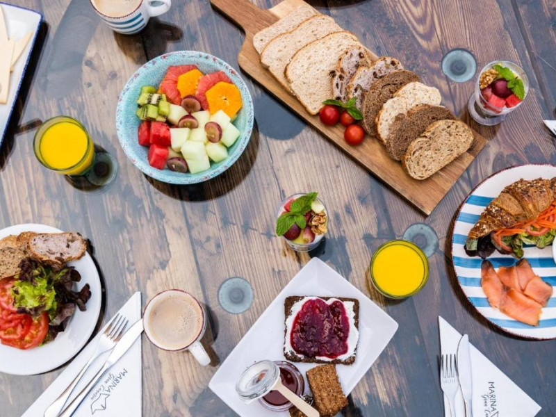 Toate unitățile de cazare de la Marina Suites oferă aer condiționat si acces gratuit la internet WiFi si sunt decorate in alb. Toate au o bucătărie cu plită și cuptor cu microunde, iar băile private includ uscător de păr.
