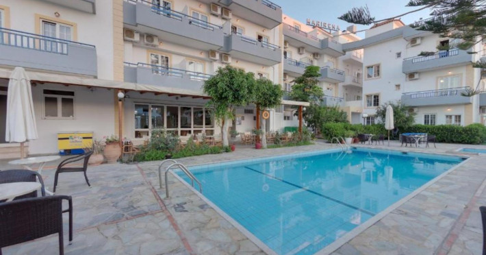 When you stay at Marirena in Malevizi, youll be near the airport, within a 10-minute drive of Heraklion Port and Heraklion Archaeological Museum. This hotel is 7.9 mi (12.7 km) from Palace of Knossos and 0.5 mi (0.8 km) from Ammoudara Beach. Make yourself at home in one of the 54 guestrooms featuring refrigerators and LCD televisions. Rooms have private balconies. Complimentary wireless internet access is available to keep you connected. Bathrooms have showers and hair dryers. Distances are displayed to the nearest 0.1 mile and kilometer. Ammoudara Beach - 0.8 km / 0.5 mi Pankritio Stadium - 3.6 km / 2.2 mi Foundation for Research and Technology - Hellas - 4.3 km / 2.6 mi Theodoros Vardinogiannis Stadium - 4.3 km / 2.7 mi Pantanassa - 4.4 km / 2.7 mi General University Hospital of Heraklion - 4.8 km / 3 mi Venetian Walls - 5.3 km / 3.3 mi Hania Gate - 5.5 km / 3.4 mi Freedom National Stadium - 5.5 km / 3.4 mi Kapetan Mihalis Korakas - 5.5 km / 3.4 mi Nikos Kazantzakis Museum - 5.7 km / 3.5 mi Agia Ekaterini Church - 5.9 km / 3.7 mi St. Minas Cathedral - 6 km / 3.7 mi Panayia Akrotiriani - 6 km / 3.7 mi Palaiokastro Beach - 6.1 km / 3.8 mi The preferred airport for Marirena is Nikos Kazantzakis Airport (HER) - 15.1 km / 9.4 mi Featured amenities include express check-in, dry cleaning/laundry services, and a 24-hour front desk. Free self parking is available onsite. Enjoy recreational amenities such as a seasonal outdoor pool and bicycles to rent. This hotel also features complimentary wireless internet access, gift shops/newsstands, and tour/ticket assistance. All-inclusive rates are available at this hotel. Meals and beverages at onsite dining establishments are included in all-inclusive rates. Charges may be applied for dining at some restaurants, special dinners and dishes, some beverages, and other amenities. Enjoy a meal at the restaurant, or stay in and take advantage of the hotels room service. Unwind at the end of the day with a drink at the bar/lounge or the poolside bar. Continental breakfasts are available daily from 8 AM to 10 AM for a fee. Youll be asked to pay the following charges at the property: A tax is imposed by the city and collected at the property. This tax is adjusted seasonally and might not apply year round. Other exemptions or reductions might apply. For more details, please contact the property using the information on the reservation confirmation received after booking. A tax is imposed by the city: From 1 November - 29 February, EUR 1.50 per accommodation, per night A tax is imposed by the city: From 1 March - 31 October, EUR 3.00 per accommodation, per night We have included all charges provided to us by the property. Fee for continental breakfast: approximately EUR 5.00 per personIn-room safe fee: EUR 1 per day The above list may not be comprehensive. Fees and deposits may not include tax and are subject to change. Cash transactions at this property cannot exceed EUR 500, due to national regulations. For further details, please contact the property using information in the booking confirmation. The seasonal pool will be open from May to October. Contactless check-in and contactless check-out are available.