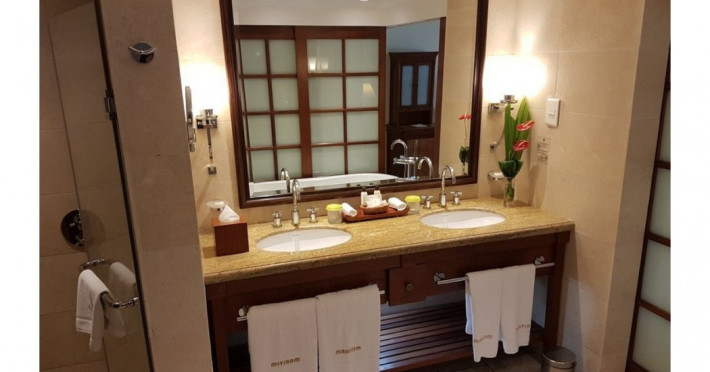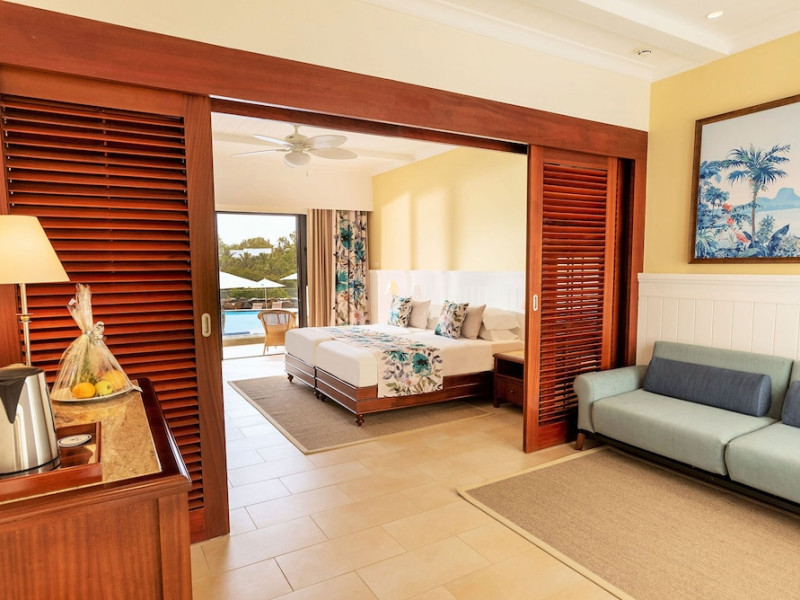 The resort boasts an outdoor pool, spa with massages, body treatments, and facials, outdoor tennis courts, a 9-hole golf course, and water-skiing facilities. Additional amenities include complimentary wireless internet access, concierge services, babysitting (surcharge), a 24-hour business center, and complimentary newspapers in the lobby. The resort provides conference space and meeting rooms. A roundtrip airport shuttle is available for a surcharge (24 hours), and free self-parking is offered on-site. Other services include a ticket service, tours, dry cleaning, and laundry service. Some rooms offer air conditioning, blackout curtains, linen service, coffee/tea maker, bottled water, and bathrobes. Guests can enjoy on-site dining, a cafe, and BBQ facilities. Leisure amenities include a hot tub, salon, steam room, spa, sauna, and fitness center. The Maritim Resort and Spa Mauritius is a hotel.