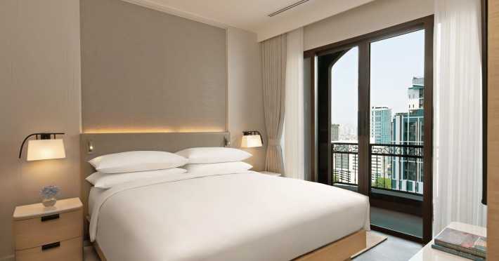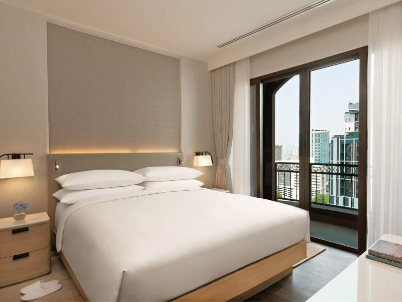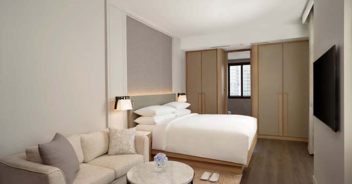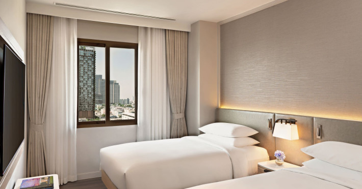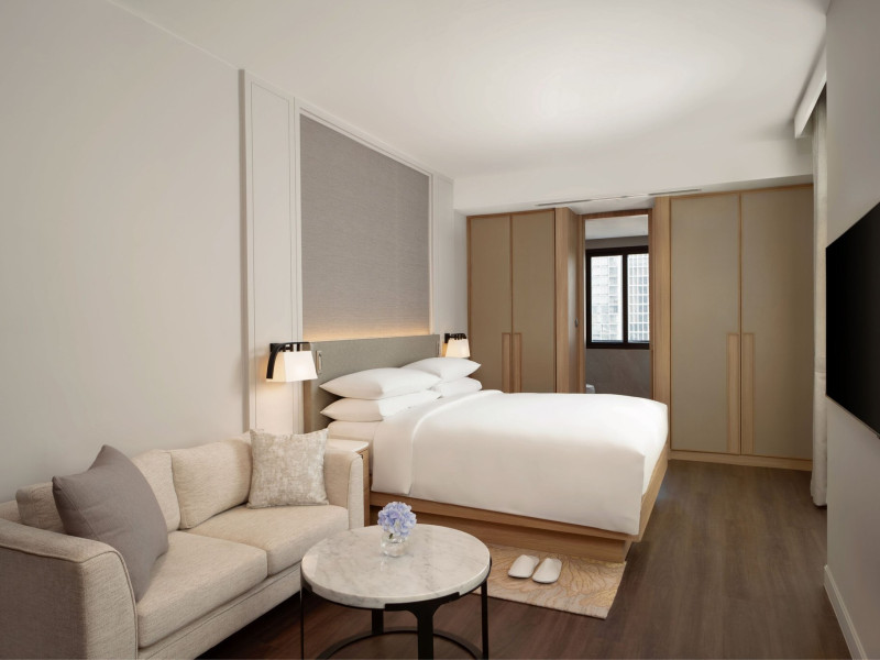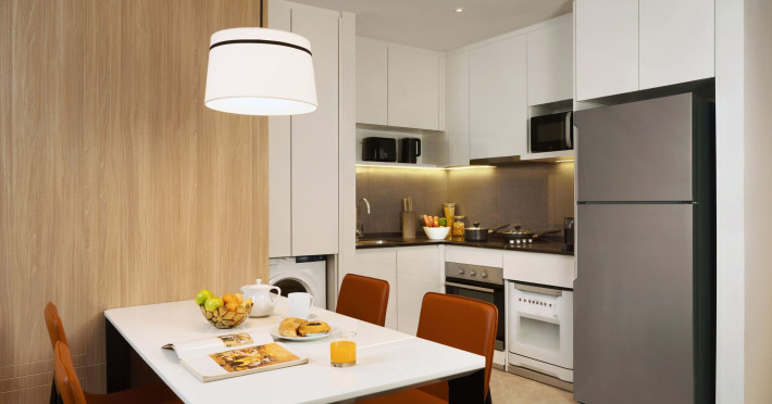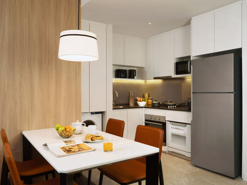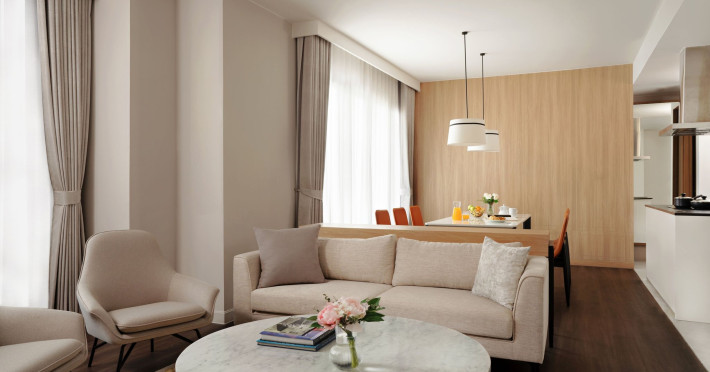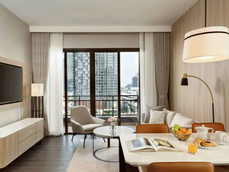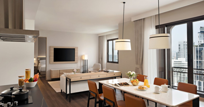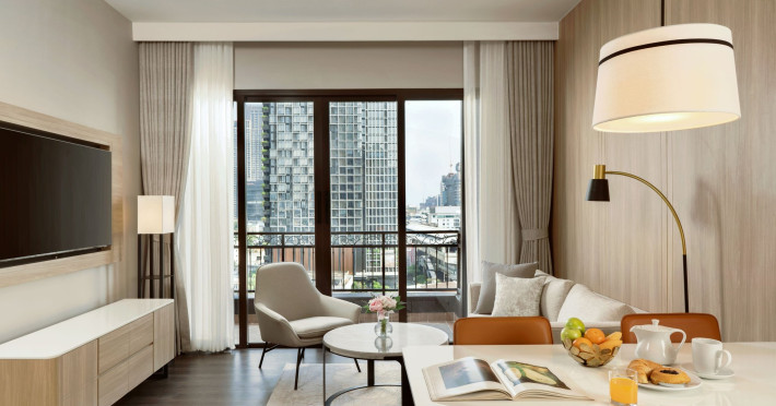 Enjoy short, mid, and long stays that feel like home at Marriott Executive Apartments Sukhumvit 101, where elegant studios and one and two-bedroom suites combine the service and amenities of a luxury hotel with the space and privacy of home. Perfectly located near BTS Skytrain and the Bangkok International Trade and Exhibition Centre (BITEC), our luxury apartments in Bangkok offer convenient access for businesses and residents alike. Whether you’re on an extended work engagement, relocating, or traveling with your family, our serviced apartments in Bangkok will delight you with space to spread out and plush amenities with upscale decor. Accommodations include separate sleeping, living, and working areas and fully equipped kitchens. Enjoy hotel-style amenities like an onsite restaurant and in-room dining, boardroom, and a 24-hour fitness center with a saltwater pool. And 24-hour staff and security to make you feel at home. At Marriott Executive Apartments Sukhumvit 101, You don’t stay here. You live here.®