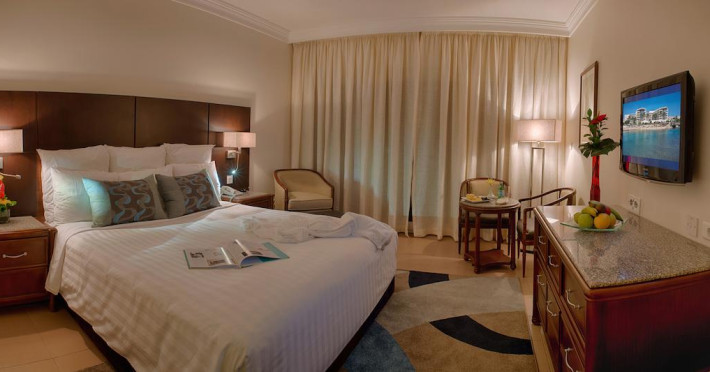 Camerele sunt dotate cu TV cu diagonală de 32 inch cu canale prin satelit, minibar şi cutie de valori. Baia are uscător de păr şi bideu.Unele camere au balcon cu vedere la mare.