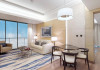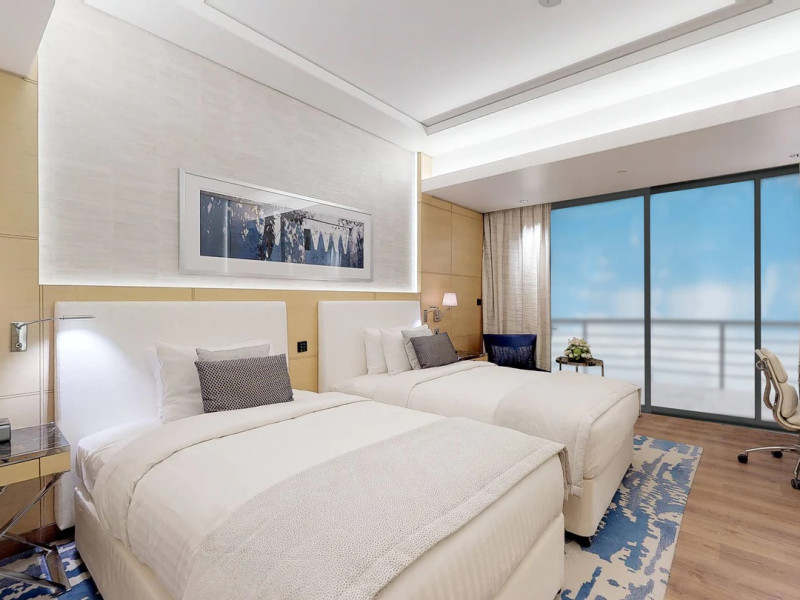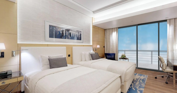 Toate camerele și suitele au balcoane private cu vedere la Golful Arabiei. Suprafata camereleor porneste de la 42 m2, aer conditionat, living, room service 24h, seif (contra cost), birou, facilitati de calcat, internet prin cablu si wireless gratuit, TV cablu/satelit, uscator de par.