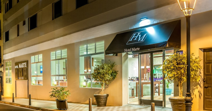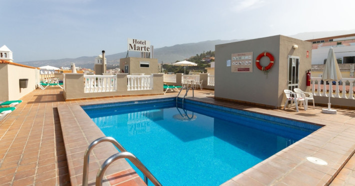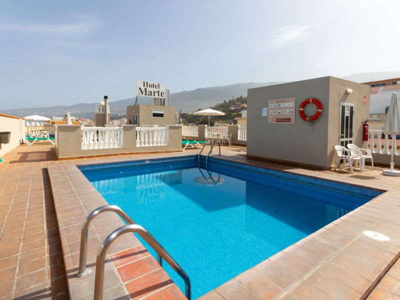 Marte Hotel is centrally located in Puerto de la Cruz, near Plaza del Charco. It features an outdoor pool, fitness center, complimentary Wi-Fi, concierge services, and a communal living room. The hotel offers 95 guestrooms with private bathrooms including showers and hair dryers. Rooms also include desks and phones. Daily housekeeping is provided. A 24-hour front desk, luggage storage, and an elevator are available. Numerous shops, bars, and restaurants are within a 5-minute walk. The Marte Hotel is a Tourist hotel. The nightlife/restaurants are located in the hotel.