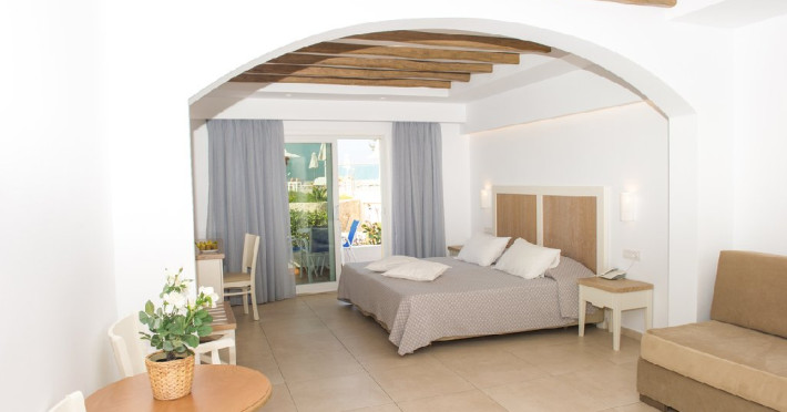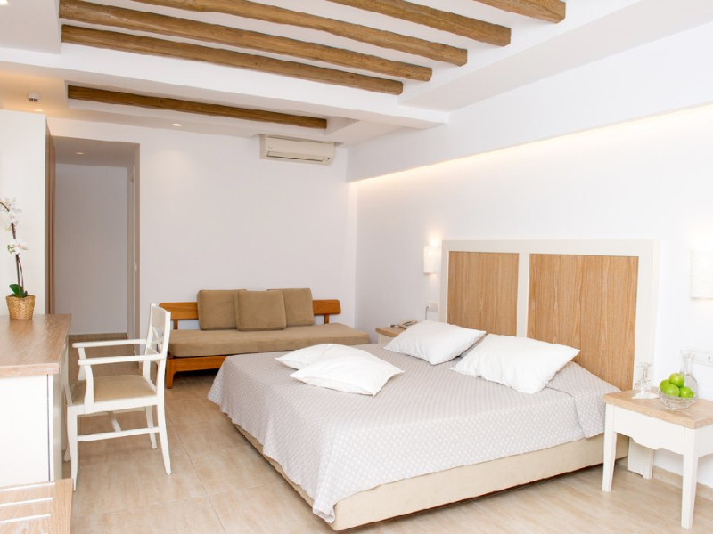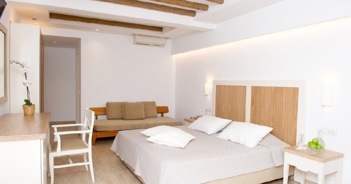 Dotari camera: Hotelul ofera camere si suite confortabile, inclusiv camere duble si unitati de familie. Acestea sunt dotate cu aer conditionat, Wi-Fi gratuit, TV cu ecran plat sau TV prin satelit, mini frigider, seif si baie privata cu dus si uscator de par. Majoritatea camerelor dispun de balcon sau terasa, cu vedere catre mare sau gradina.