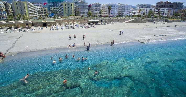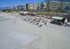 Plaja: privata, cu nisip si pietricele si platforma de piatra in mare. Sezlongurile si umbrelutele sunt gratuite. Accesul la plaja se face printr-un tunel de 50 m.