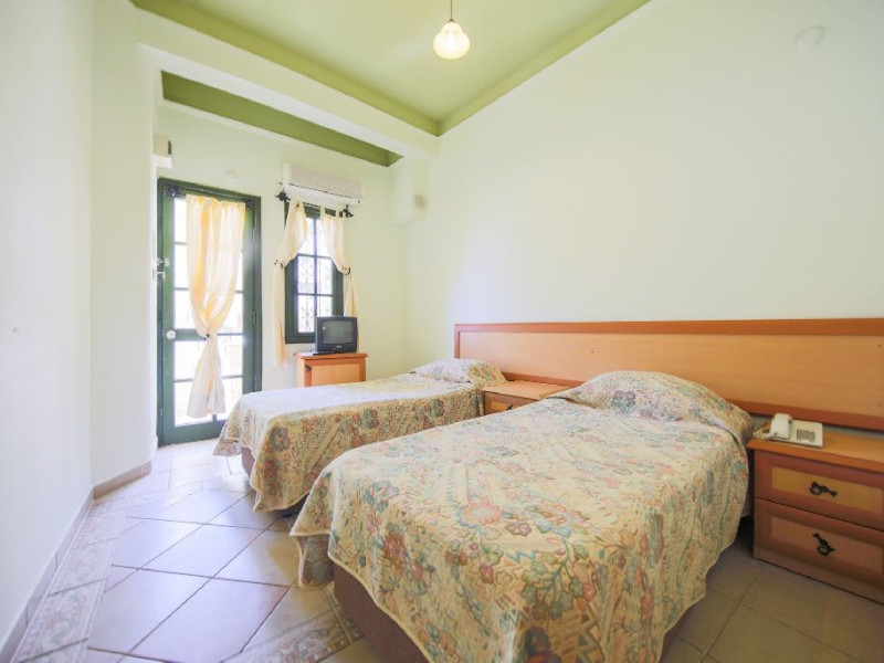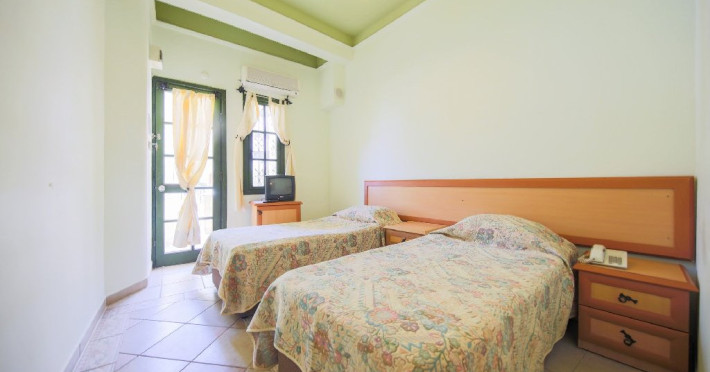 Dotari camere: dormitor cu pat dublu sau doua paturi, gresie, balcon, baie cu dus, uscator de par telefon, TV satelit, minibar (cu plata), seif, aer conditionat individual, WiFi. Camerele au vedere catre munte, catre piscina si la mare. Doar camerele family suites au dormitoare separate.