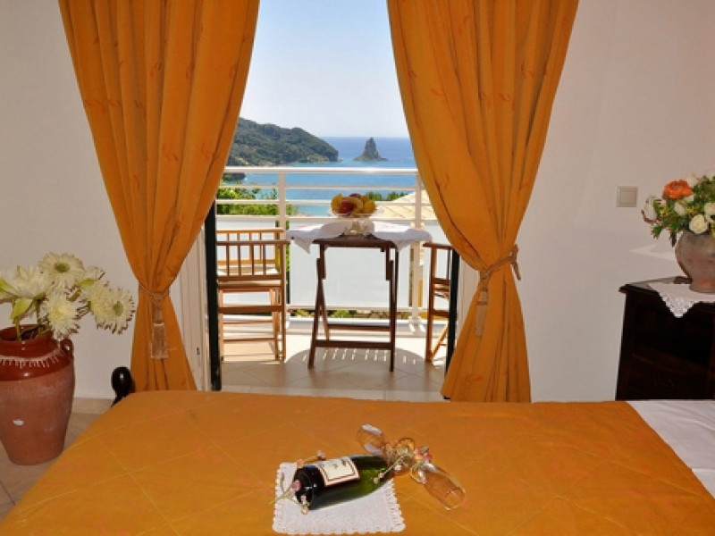 Mazis Golden View & Apartments is located in Agios Gordios on the west coast of Corfu, 500m from the sandy beach of Agios Gordios. Agios Gordios combines the greenery of the mountain and the blue of the sea. The golden beach and crystal clear waters offer you an exquisite holiday resort, satisfying even the most discerning customer.
