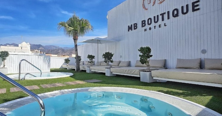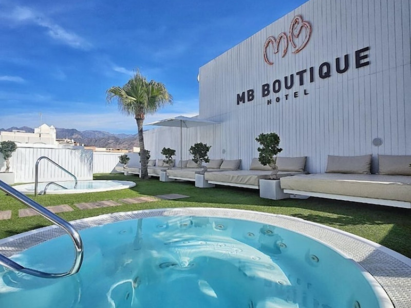 Located in Nerja, MB Boutique Hotel - Adults Recommended is within walking distance of the town center and Balcon de Europa, and a short walk from Torrecilla Beach. Malaga Airport is approximately 40-45 minutes away. The hotel offers air-conditioned rooms with complimentary WiFi, a free safe, and a pillow menu. Rooms also feature a flat-screen TV with international channels, a coffee machine, and a private bathroom with complimentary toiletries, a hairdryer, and bathrobes. Conveniences include laptop-compatible safes and coffee/tea makers, as well as phones with free local calls. Guests can enjoy a rooftop terrace with Balinese beds and hot tubs. Additional amenities include a 24-hour front desk, concierge service, luggage storage, a business center, dry cleaning/laundry services, and a fitness center. Breakfast is available daily for a fee. The hotel provides taxi, car hire and shuttle amenities. On-site parking is available for a surcharge. Smoking is prohibited throughout the entire hotel, except in designated areas. The MB BOUTIQUE HOTEL is a hotel. Located in NERJA area.