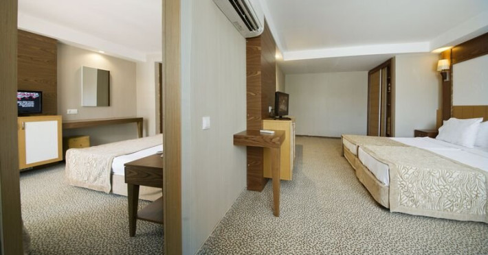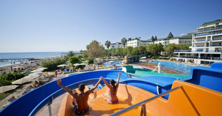 Facilitati hotel: Hotelul pune la dispozitia turistilor serviciu de spalatorie (contra cost), internet cafe (contra cost), restaurant, baruri, seif (contra cost), telefon, servicii medicale (contra cost), bowling (contra cost), billiard (contra cost), baby-sitter (contra cost), SPA center (contra cost), room service, sala de jocuri, sporturi nautice (contra cost), internet in lobby, magazine, salon de infrumusetare, plaja privata (nisipoasa), sezlongurile si umbrelutele la plaja/piscina, piscina pentru copii, loc de joaca, darts, tenis de masa, program pentru copii, mini-club (varste cuprinse intre 04-12 ani), Aqua park cu 3 tobogane, piscina interioara pentru copii, animatie, centru fitness, baie turceasca (contra cost), sauna (contra cost), aerobic, piscina exterioara, piscina interioara, jacuzzi, baschet, volei pe plaja, muzica live.