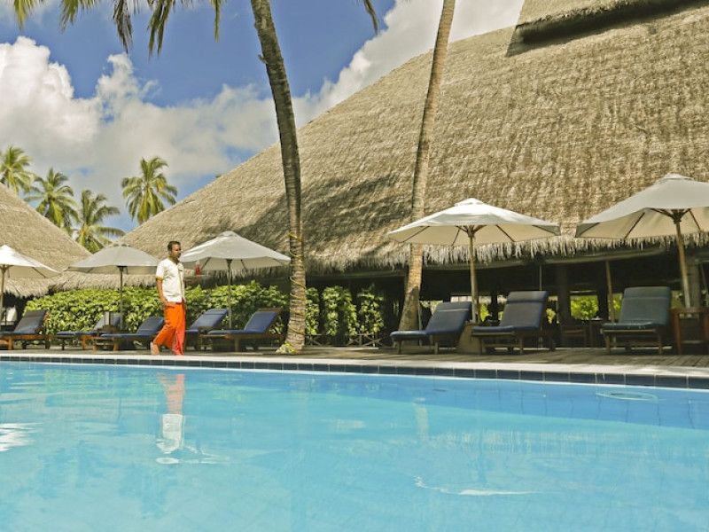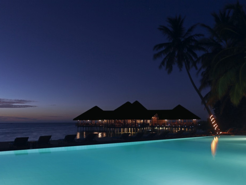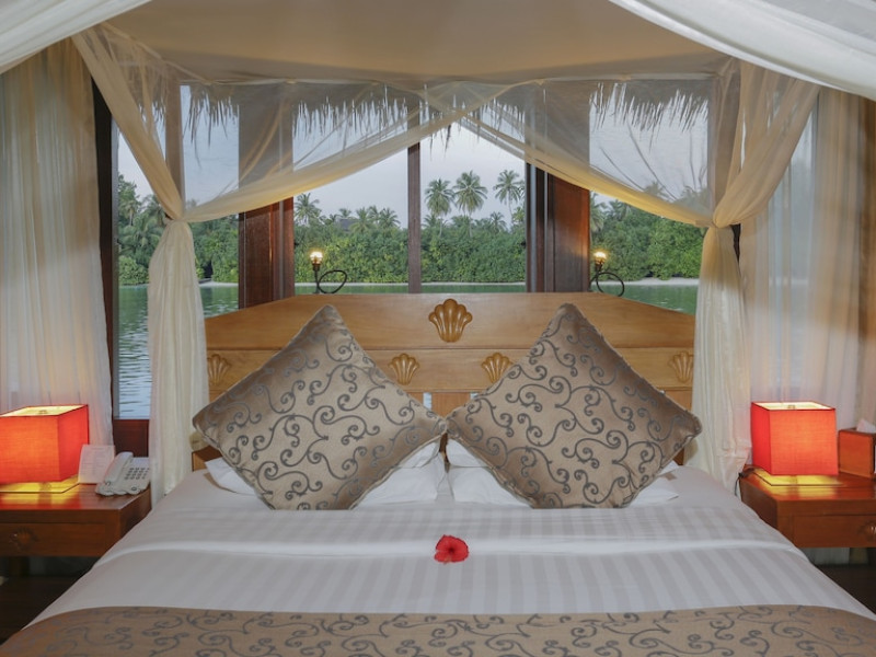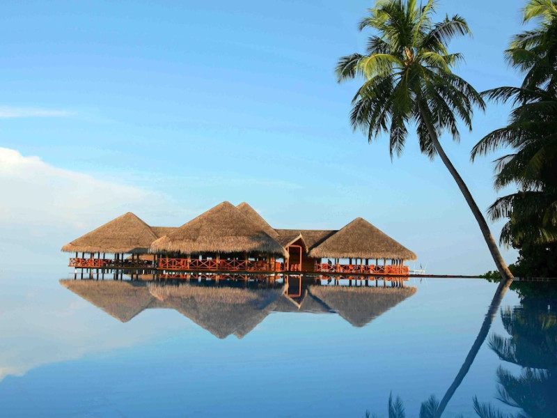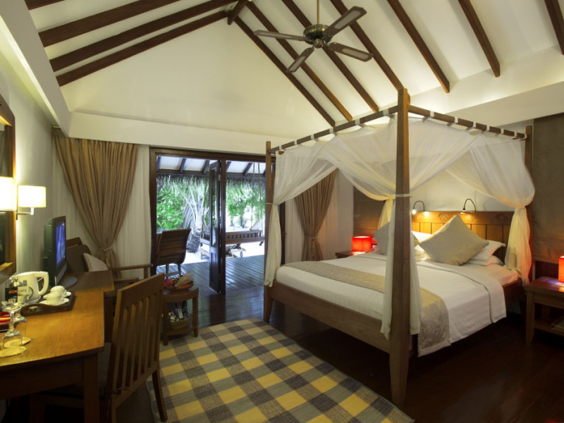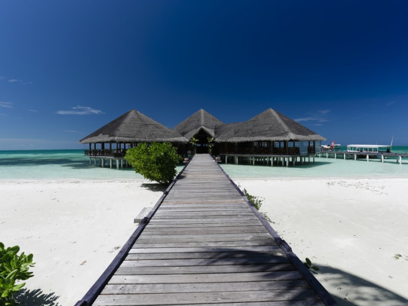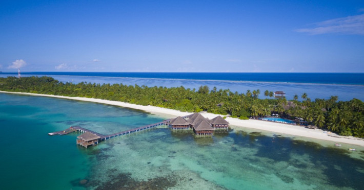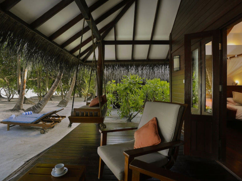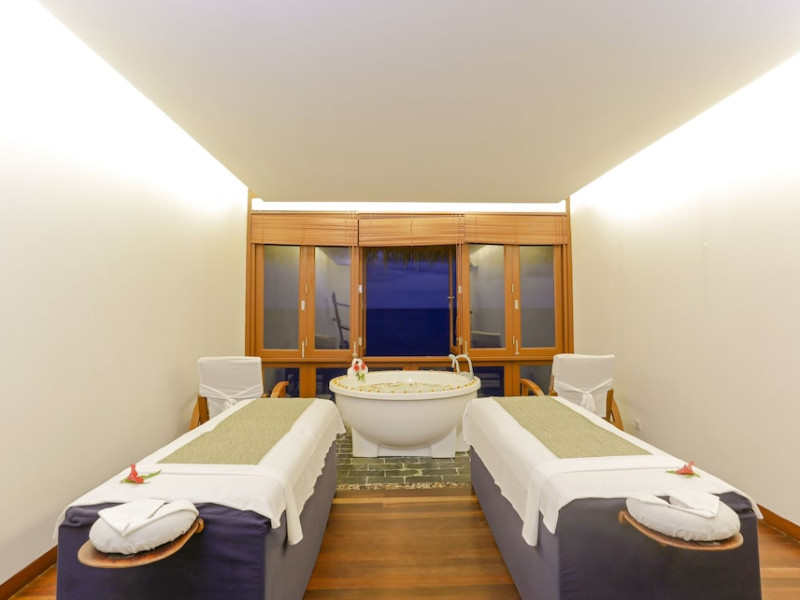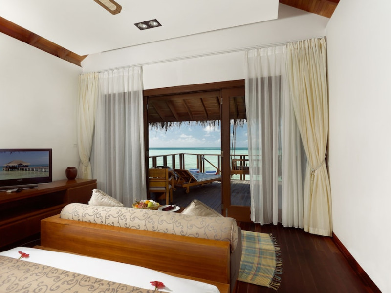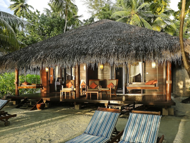 Medhufushi Island Resort, located in Medhufushi, offers 112 air-conditioned villas spread across 24 acres in Meemu Atoll, approximately 90 miles from Velana International Airport (MLE). A 40-minute seaplane transfer can be arranged. Villas feature private furnished patios, flat-screen TVs, DVD players, minibars, and open-air rain showers. The resort boasts two restaurants (Malafaiy and Alfresco), a poolside bar, and the over-water Vilu Bar. Dining options include buffet spreads, à la carte dishes, and light refreshments. All-inclusive rates are available, though some charges may apply for specific restaurants, dinners, beverages, and amenities. Onsite amenities include a full-service spa over the lagoon offering massages, body treatments, and facials; an outdoor pool; a fitness center; complimentary Wi-Fi; concierge services; gift shops; and dry cleaning/laundry services. Water sports such as surfing, windsurfing, canoeing, and snorkeling are available. A roundtrip airport shuttle is available for a surcharge.