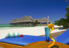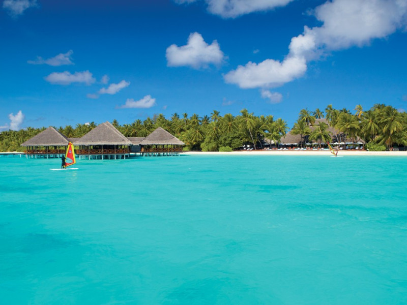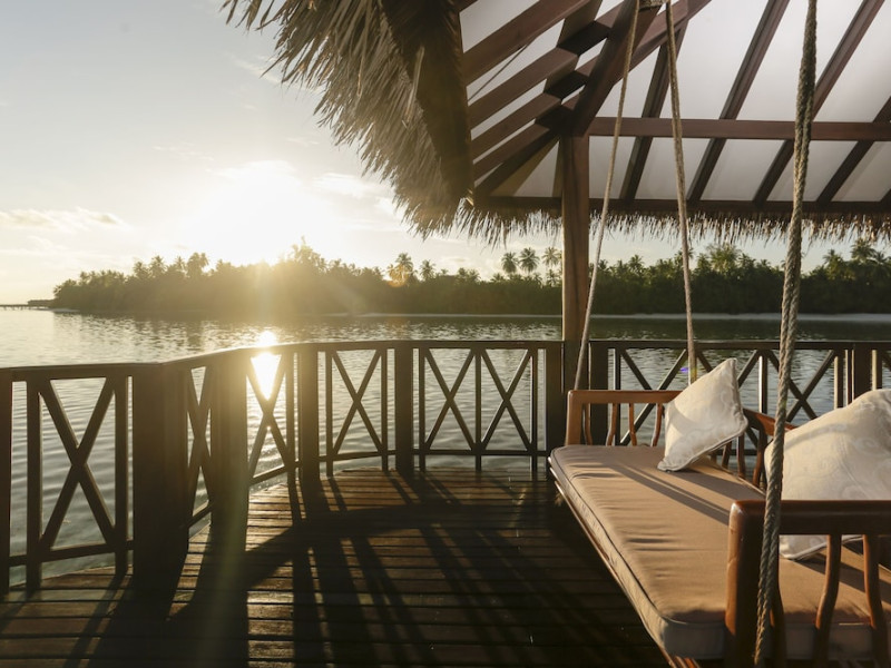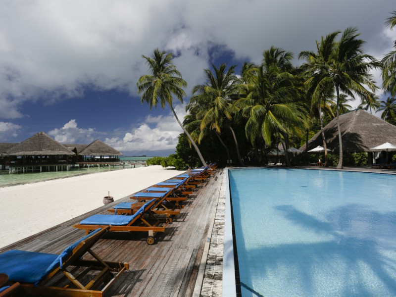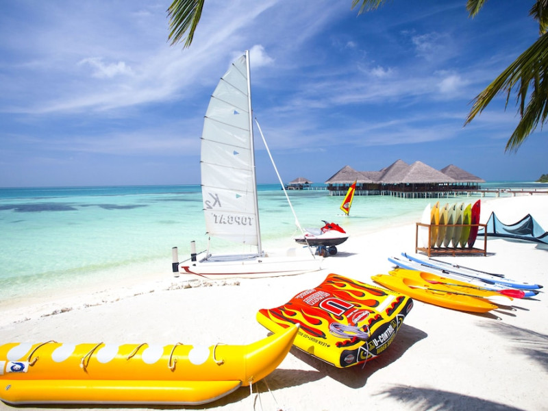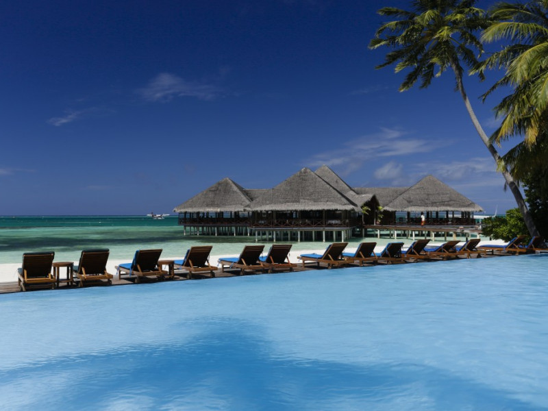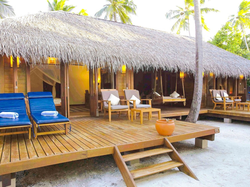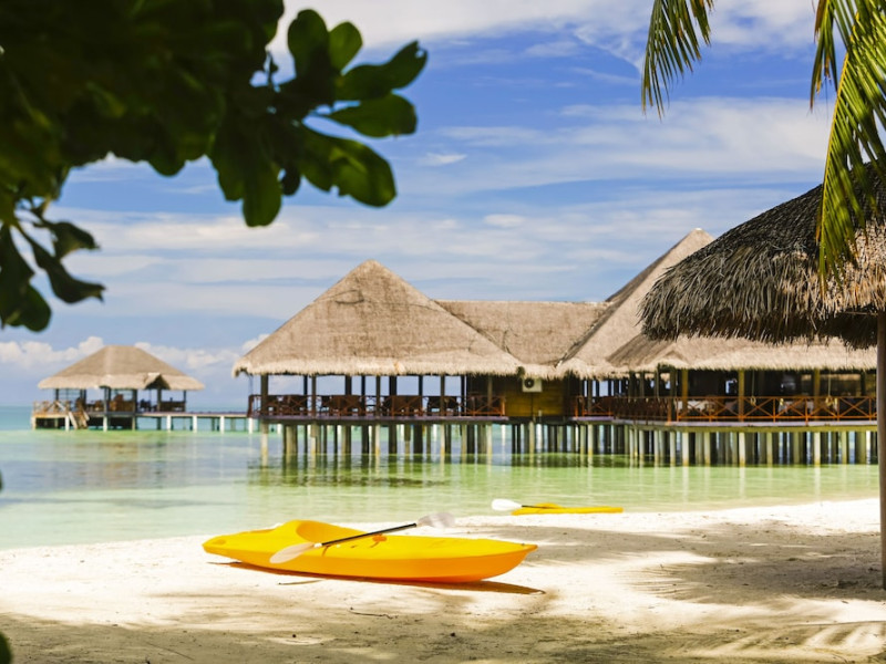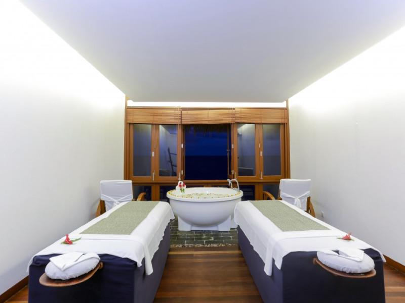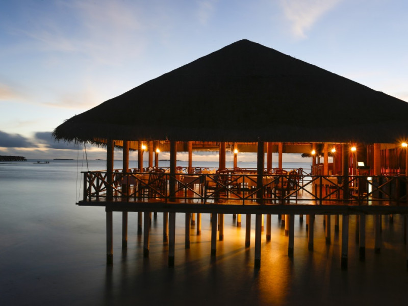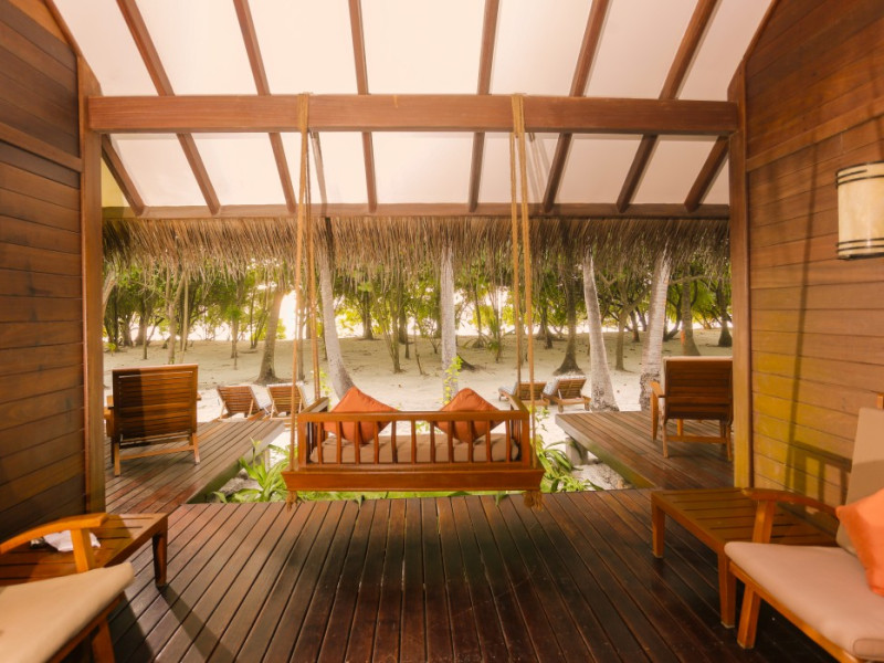 Medhufushi Island Resort, located in Medhufushi, offers 112 air-conditioned villas spread across 24 acres in Meemu Atoll, approximately 90 miles from Velana International Airport (MLE). A 40-minute seaplane transfer can be arranged. Villas feature private furnished patios, flat-screen TVs, DVD players, minibars, and open-air rain showers. The resort boasts two restaurants (Malafaiy and Alfresco), a poolside bar, and the over-water Vilu Bar. Dining options include buffet spreads, à la carte dishes, and light refreshments. All-inclusive rates are available, though some charges may apply for specific restaurants, dinners, beverages, and amenities. Onsite amenities include a full-service spa over the lagoon offering massages, body treatments, and facials; an outdoor pool; a fitness center; complimentary Wi-Fi; concierge services; gift shops; and dry cleaning/laundry services. Water sports such as surfing, windsurfing, canoeing, and snorkeling are available. A roundtrip airport shuttle is available for a surcharge.