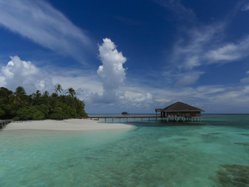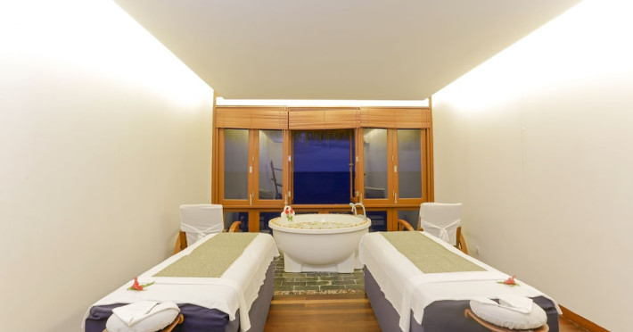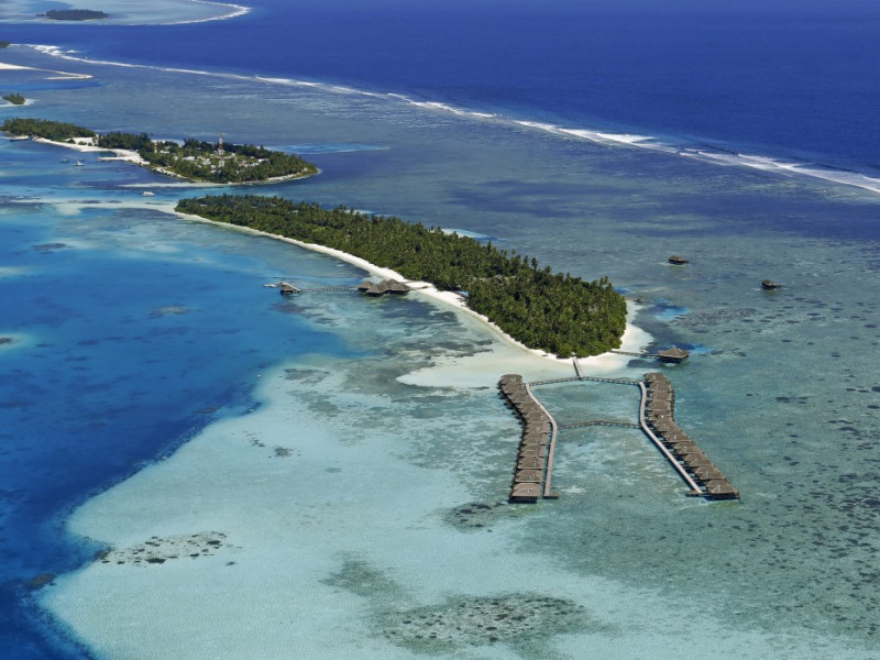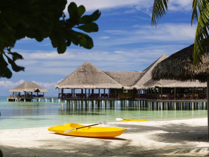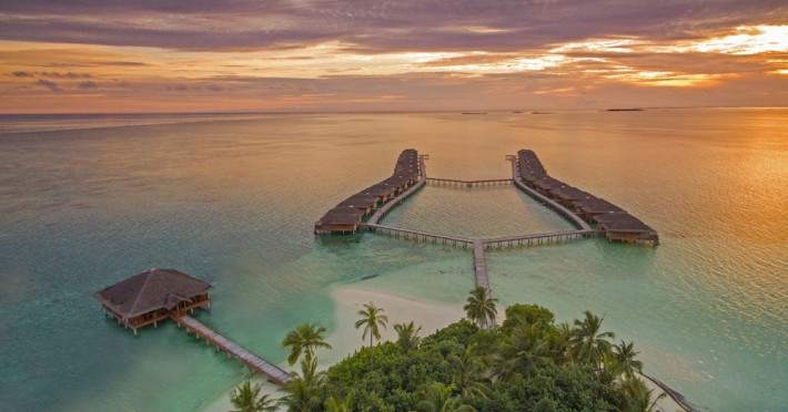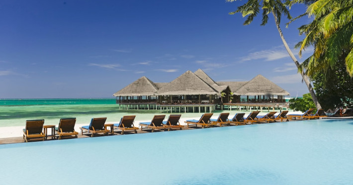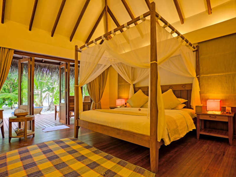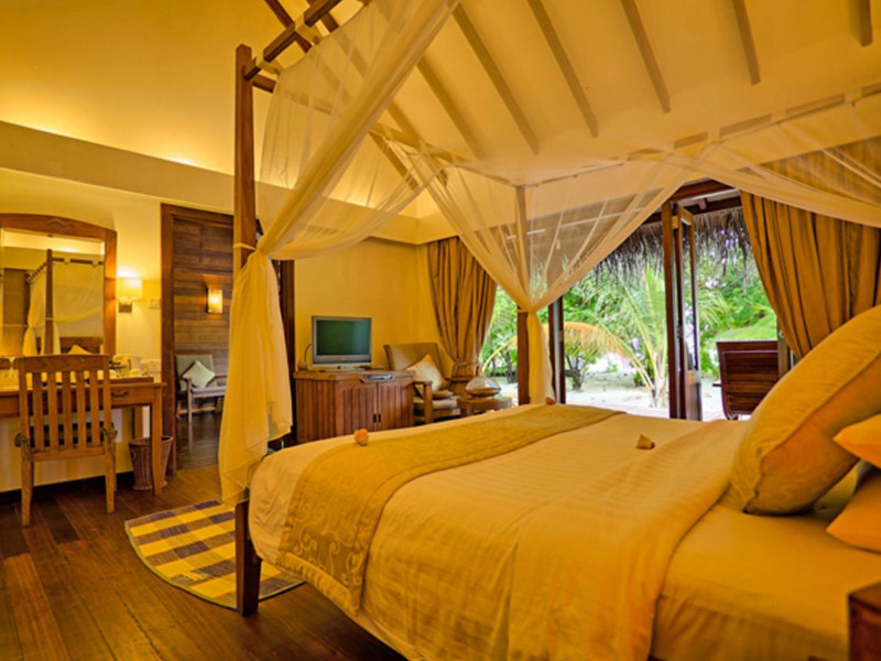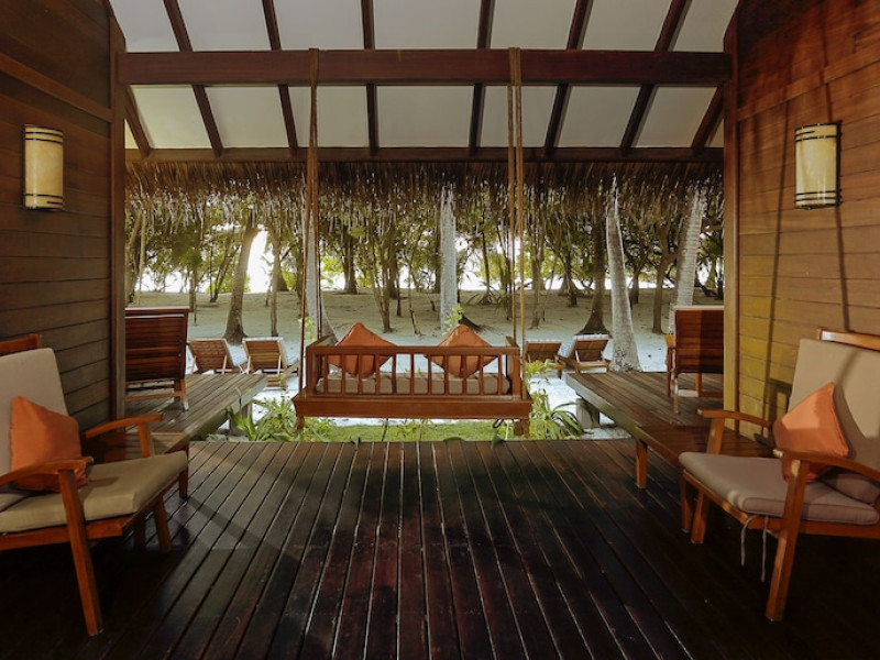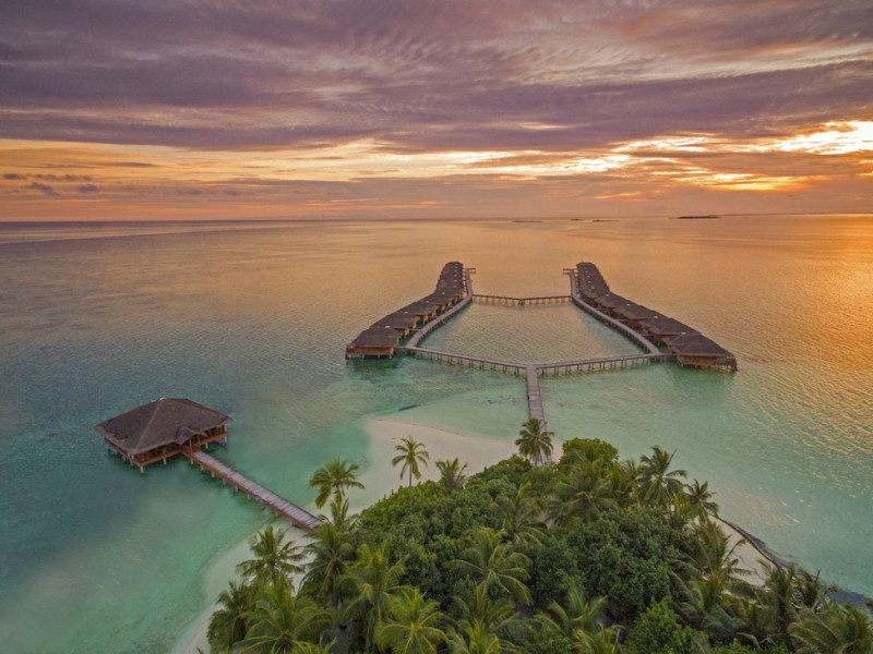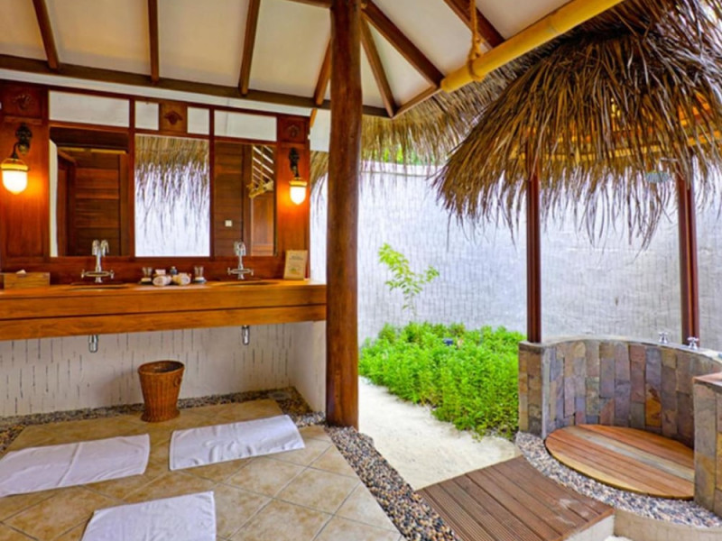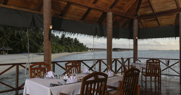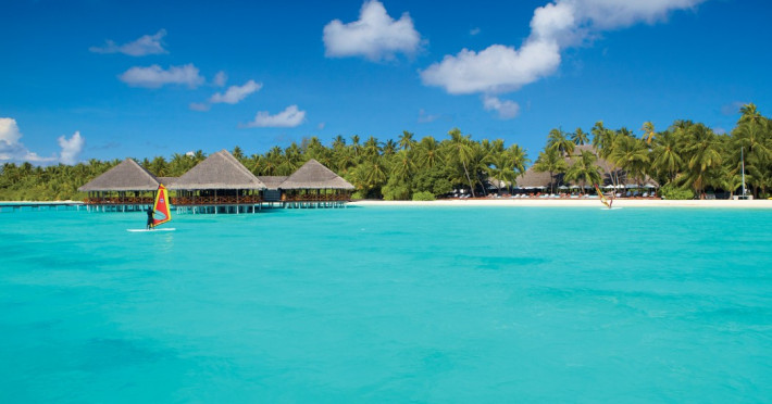 Medhufushi Island Resort, located in Medhufushi, offers 112 air-conditioned villas spread across 24 acres in Meemu Atoll, approximately 90 miles from Velana International Airport (MLE). A 40-minute seaplane transfer can be arranged. Villas feature private furnished patios, flat-screen TVs, DVD players, minibars, and open-air rain showers. The resort boasts two restaurants (Malafaiy and Alfresco), a poolside bar, and the over-water Vilu Bar. Dining options include buffet spreads, à la carte dishes, and light refreshments. All-inclusive rates are available, though some charges may apply for specific restaurants, dinners, beverages, and amenities. Onsite amenities include a full-service spa over the lagoon offering massages, body treatments, and facials; an outdoor pool; a fitness center; complimentary Wi-Fi; concierge services; gift shops; and dry cleaning/laundry services. Water sports such as surfing, windsurfing, canoeing, and snorkeling are available. A roundtrip airport shuttle is available for a surcharge.