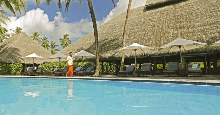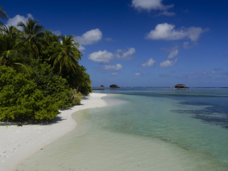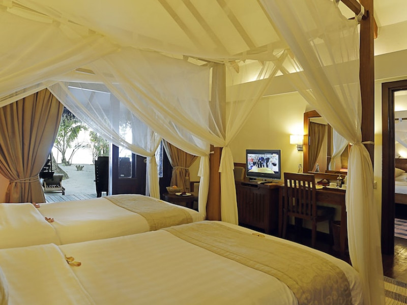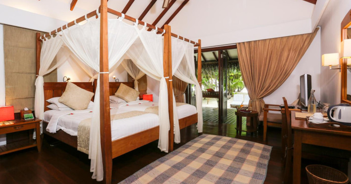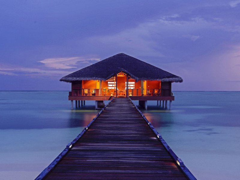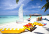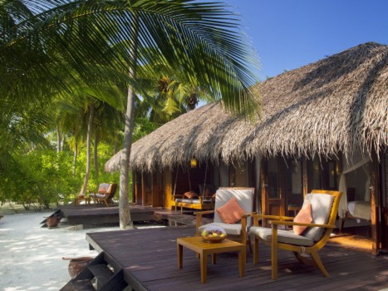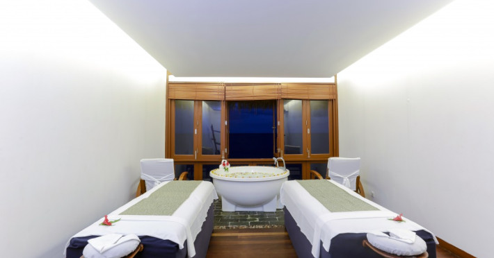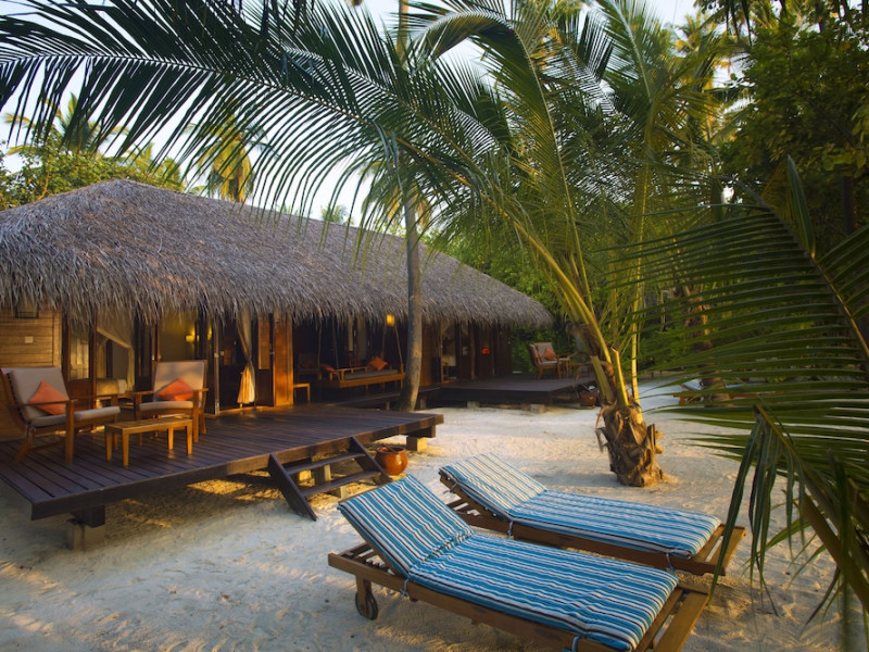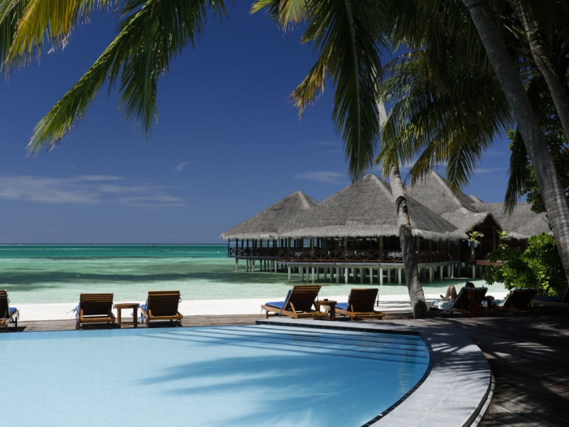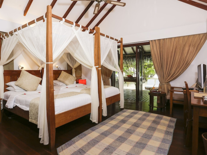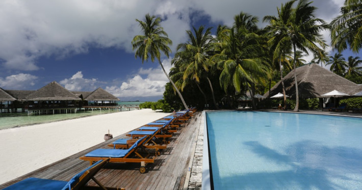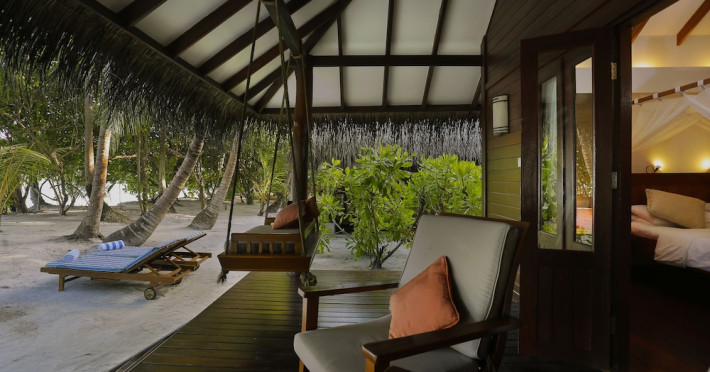 Medhufushi Island Resort, located in Medhufushi, offers 112 air-conditioned villas spread across 24 acres in Meemu Atoll, approximately 90 miles from Velana International Airport (MLE). A 40-minute seaplane transfer can be arranged. Villas feature private furnished patios, flat-screen TVs, DVD players, minibars, and open-air rain showers. The resort boasts two restaurants (Malafaiy and Alfresco), a poolside bar, and the over-water Vilu Bar. Dining options include buffet spreads, à la carte dishes, and light refreshments. All-inclusive rates are available, though some charges may apply for specific restaurants, dinners, beverages, and amenities. Onsite amenities include a full-service spa over the lagoon offering massages, body treatments, and facials; an outdoor pool; a fitness center; complimentary Wi-Fi; concierge services; gift shops; and dry cleaning/laundry services. Water sports such as surfing, windsurfing, canoeing, and snorkeling are available. A roundtrip airport shuttle is available for a surcharge.