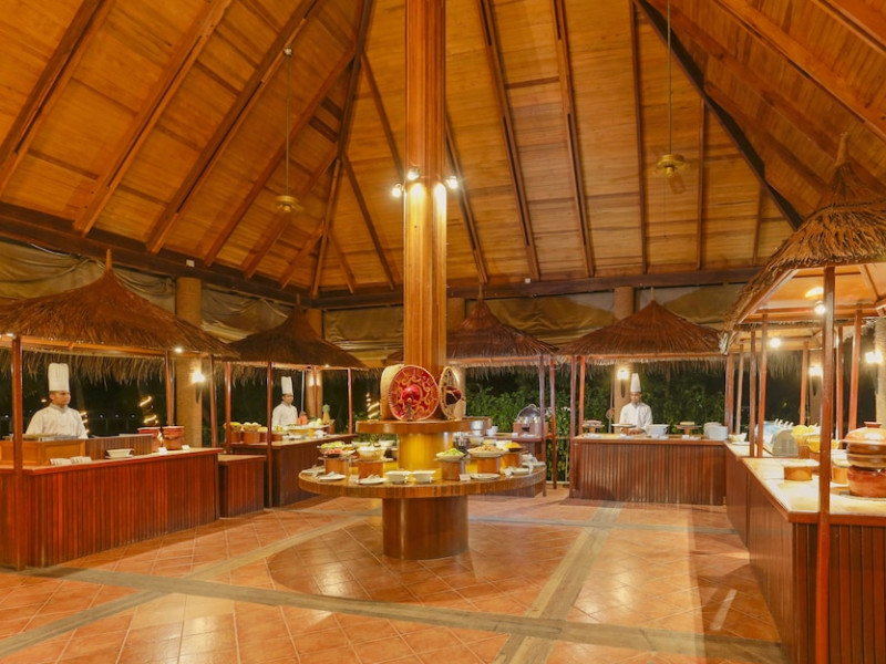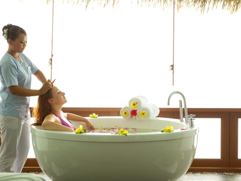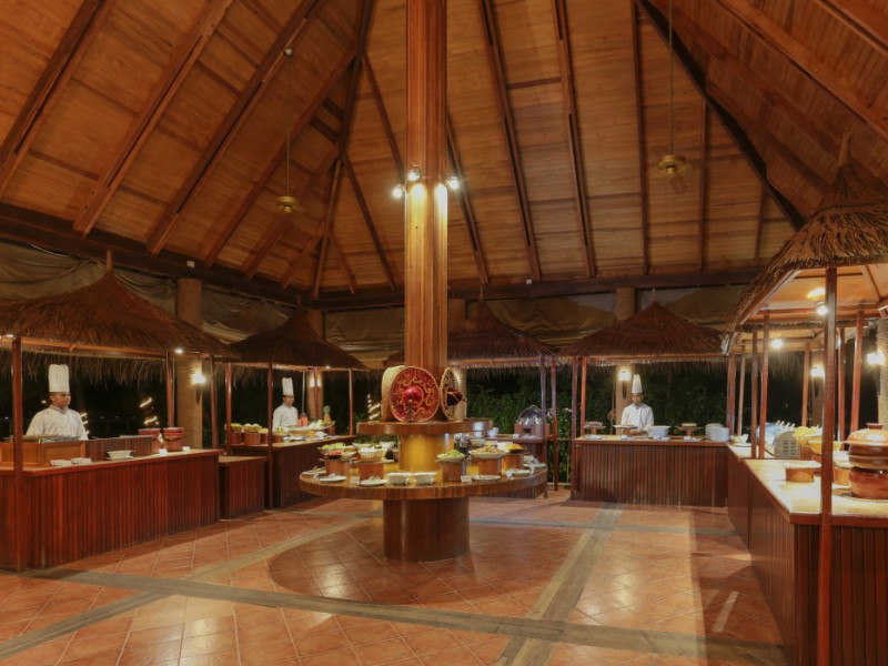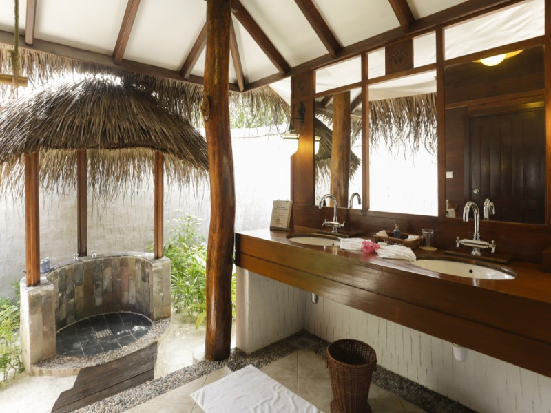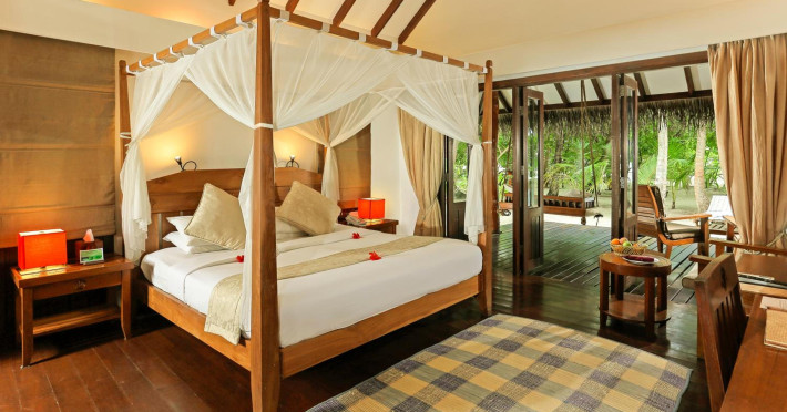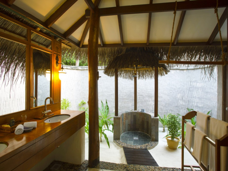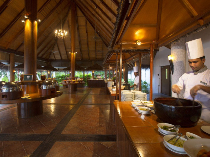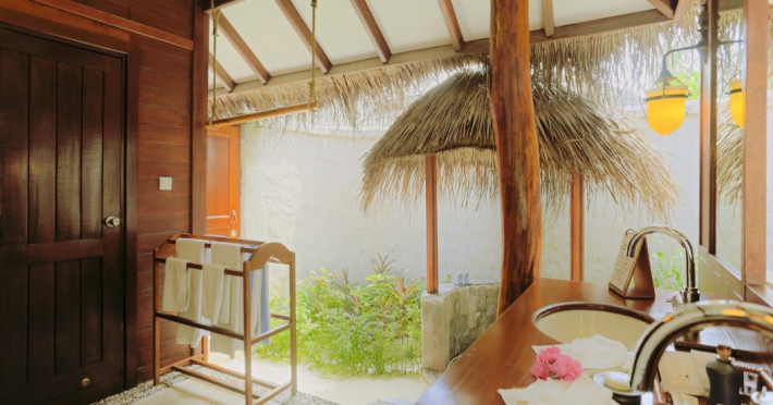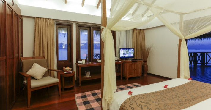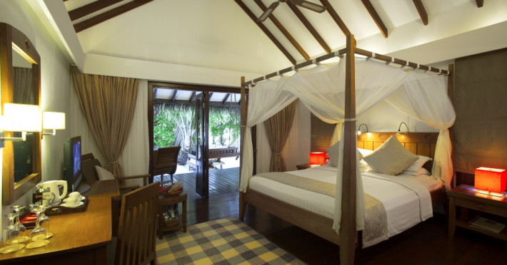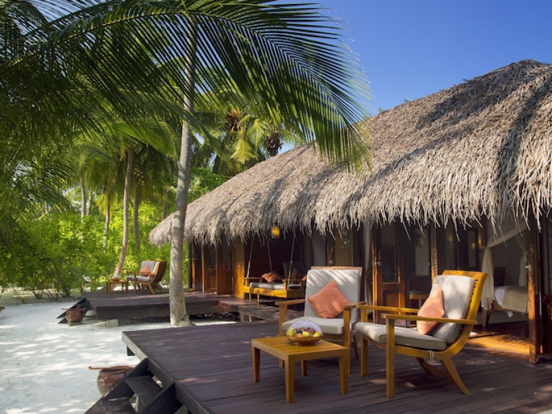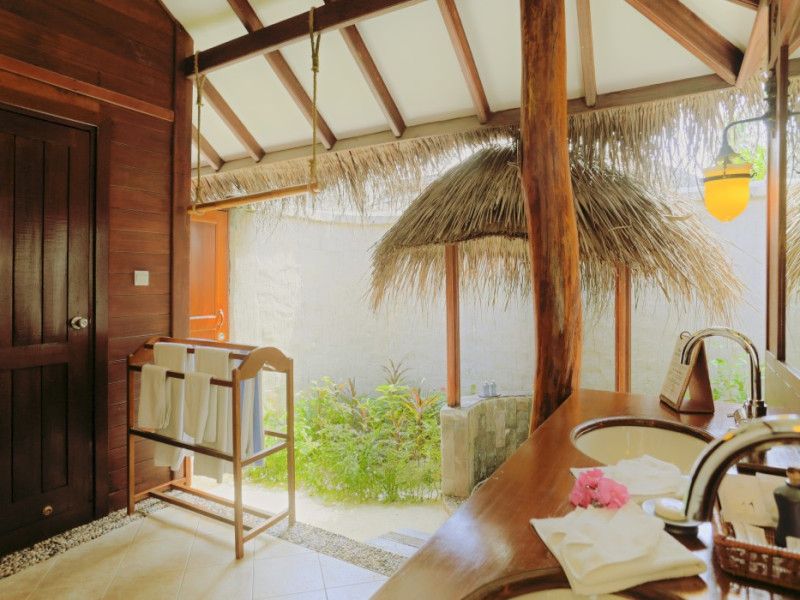 Medhufushi Island Resort, located in Medhufushi, offers 112 air-conditioned villas spread across 24 acres in Meemu Atoll, approximately 90 miles from Velana International Airport (MLE). A 40-minute seaplane transfer can be arranged. Villas feature private furnished patios, flat-screen TVs, DVD players, minibars, and open-air rain showers. The resort boasts two restaurants (Malafaiy and Alfresco), a poolside bar, and the over-water Vilu Bar. Dining options include buffet spreads, à la carte dishes, and light refreshments. All-inclusive rates are available, though some charges may apply for specific restaurants, dinners, beverages, and amenities. Onsite amenities include a full-service spa over the lagoon offering massages, body treatments, and facials; an outdoor pool; a fitness center; complimentary Wi-Fi; concierge services; gift shops; and dry cleaning/laundry services. Water sports such as surfing, windsurfing, canoeing, and snorkeling are available. A roundtrip airport shuttle is available for a surcharge.