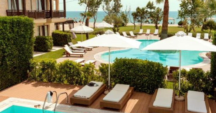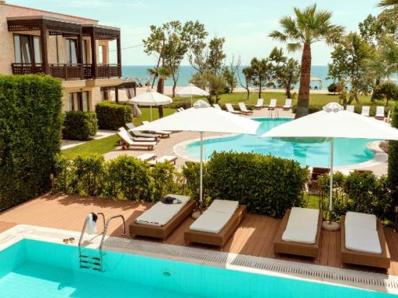 Mediterranean Village Hotel & Spa 5* se află direct pe plaja cu nisip fin din Paralia Katerini, oferind o experiență autentică pe Riviera Olimpului. Resortul de lux imbină arhitectura mediteraneană cu facilitățile moderne, creand o atmosferă elegantă și relaxantă.