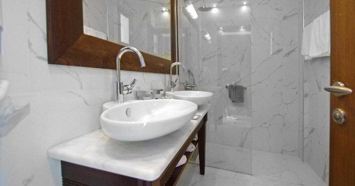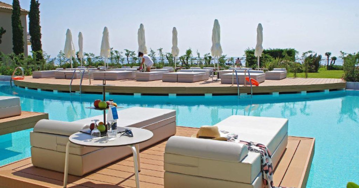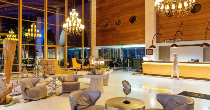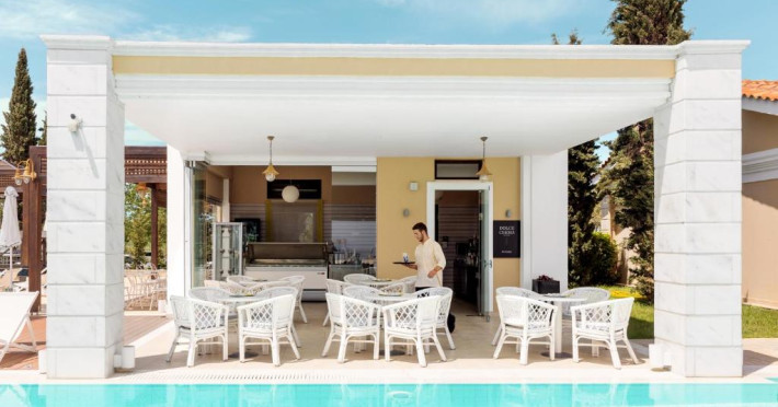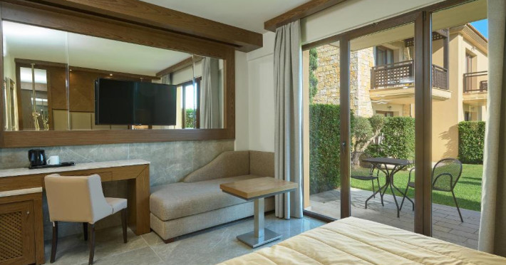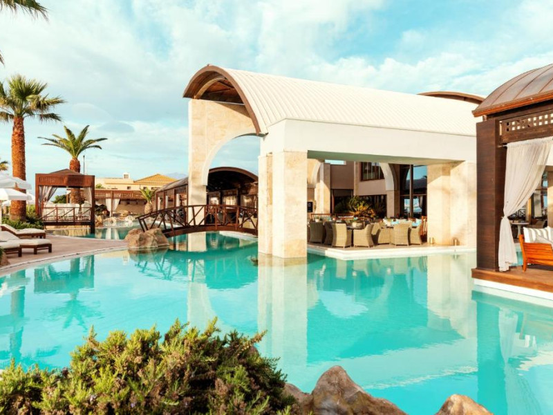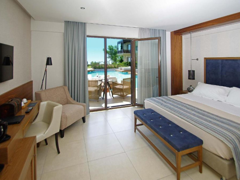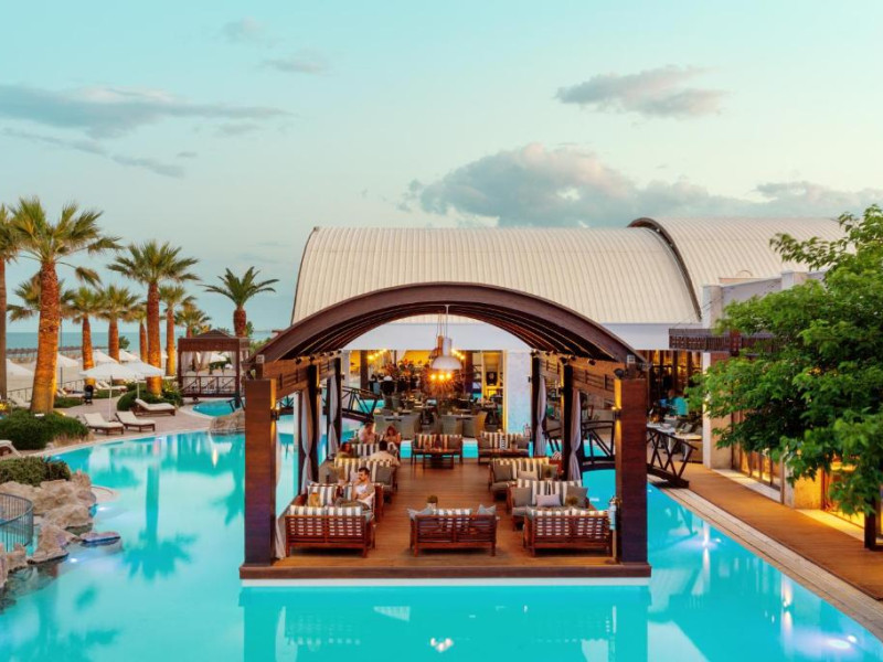 Oaspeții se pot bucura de două piscine exterioare cu vedere la Marea Egee, un centru spa complet echipat și un restaurant principal cu specific mediteranean și internațional. Camerele sunt decorate in nuanțe calde și sunt dotate cu balcoane spațioase, majoritatea oferind panorame spectaculoase spre mare.
