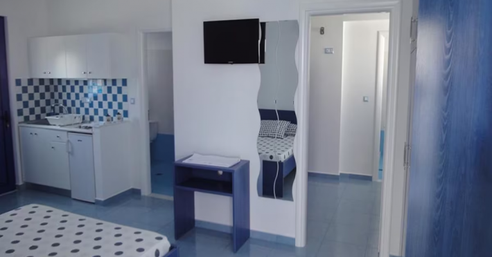 Located near Stegna Beach in Rhodes, Mediterraneo offers air-conditioned apartments with kitchenettes featuring refrigerators and stovetops, as well as private furnished balconies or patios. Complimentary Wi-Fi is available, and guests can enjoy views from the terrace and garden. Amenities include tour/ticket assistance, a picnic area, barbecue grills, luggage storage, laundry facilities, and dry cleaning/laundry services. Room service is available during limited hours. Each room is equipped with a safe, microwave, and a flat-screen or LCD television with satellite programming. Housekeeping is provided daily. A roundtrip airport shuttle is available for a surcharge (available 24 hours), and free self-parking is provided onsite. Tsambika Beach is within a 15-minute drive. The Mediterraneo Apartments is a hotel.