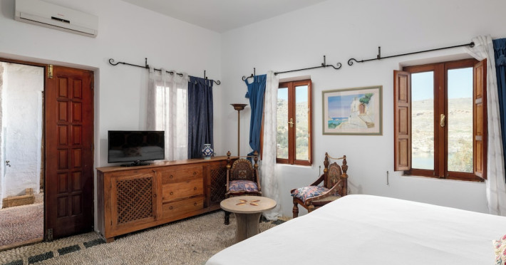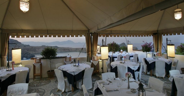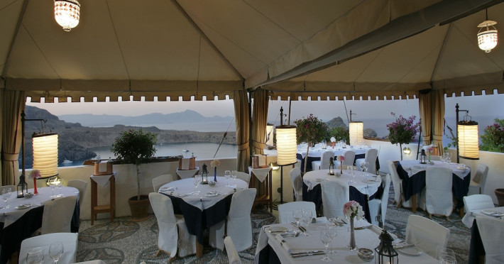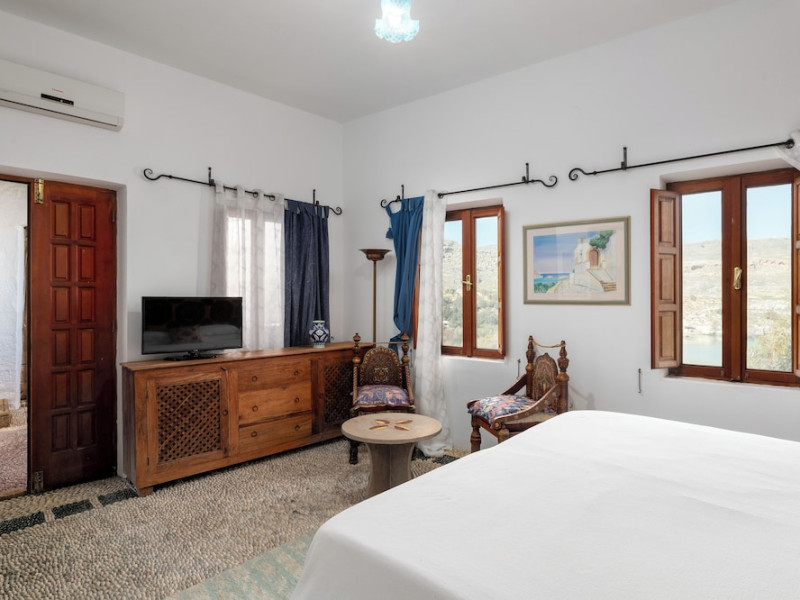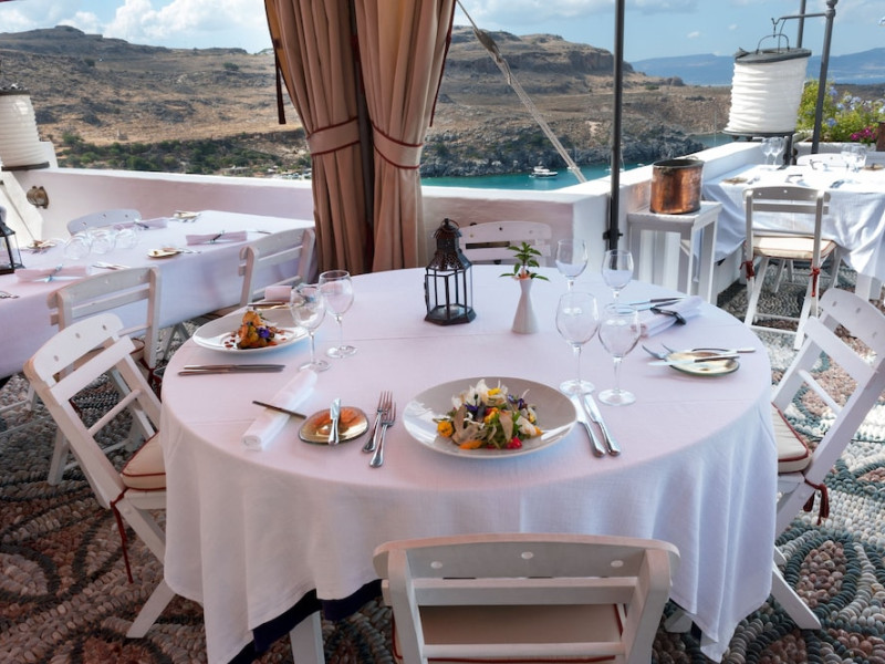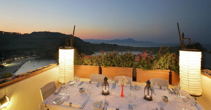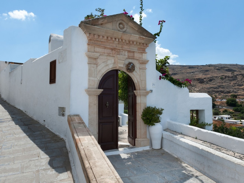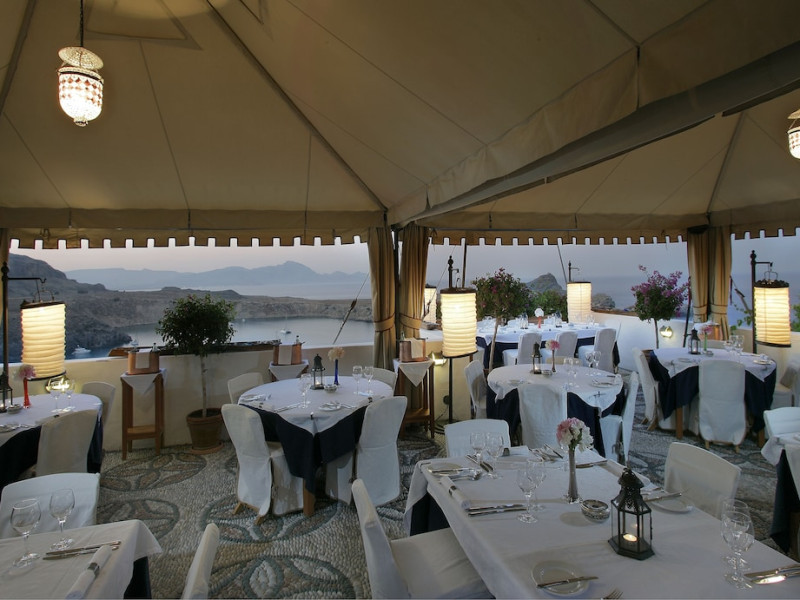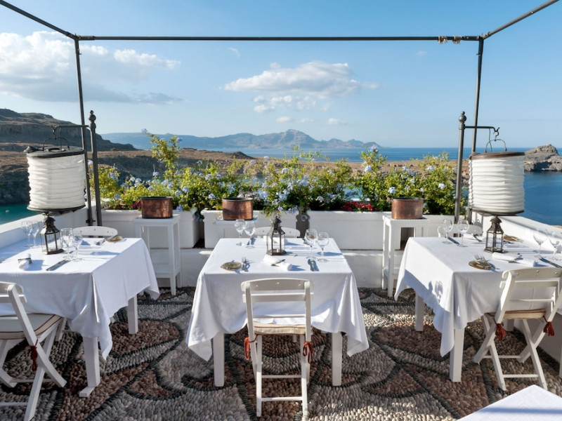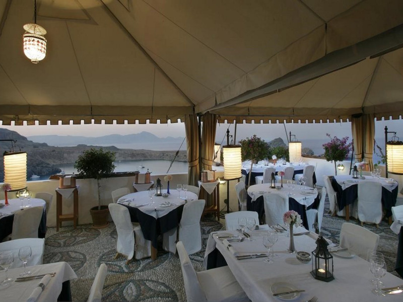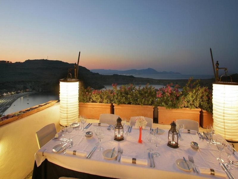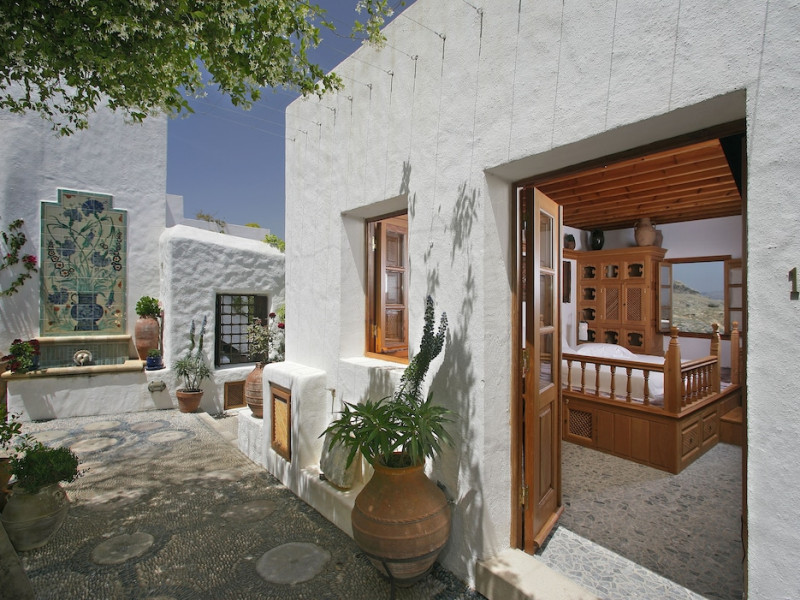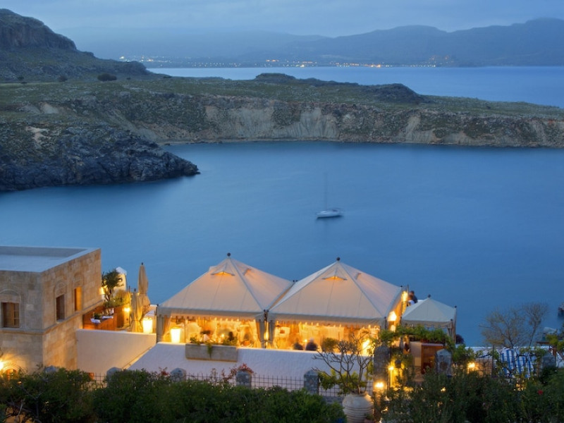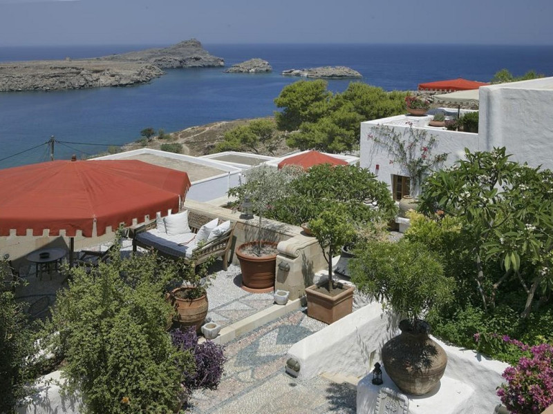 Facilities and services include restaurant, bar, wireless Internet access, gift shop and business center.Rooms feature minibar (extra charge), coffee/tea maker, air conditioning, wireless Internet access, safe, TV, telephone, hairdryer, slippers, bathrobe, bathroom and balcony/terrace.Note: Reception with limited opening hours. Please advise flight number and estimated arrival time when booking this hotel.Address: Main Street, Lindos, 85107 Rhodes, Greece.