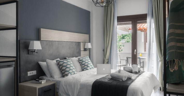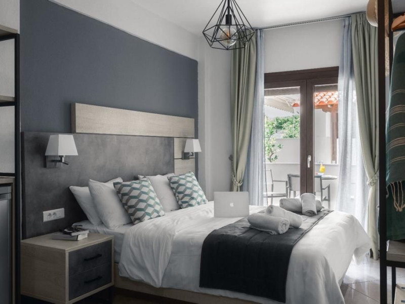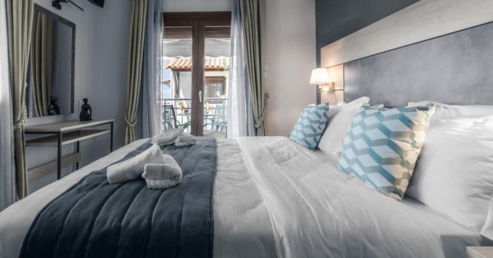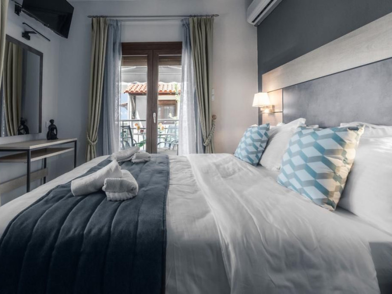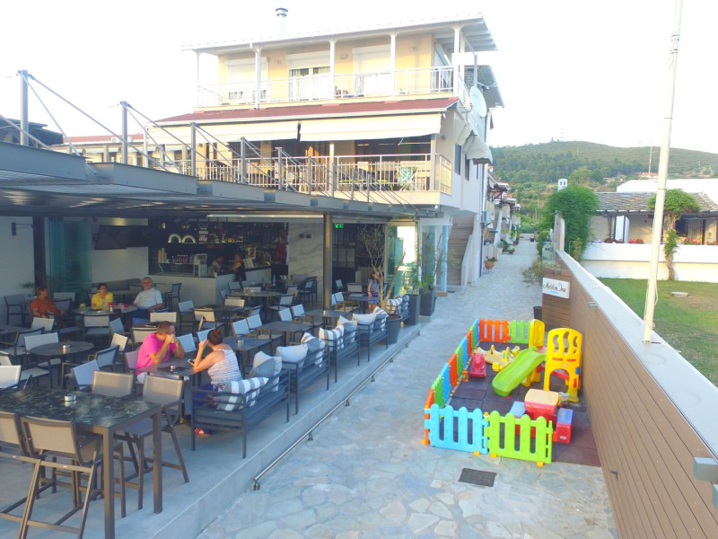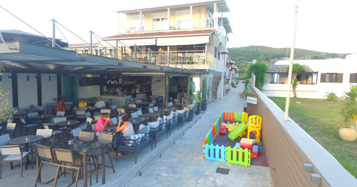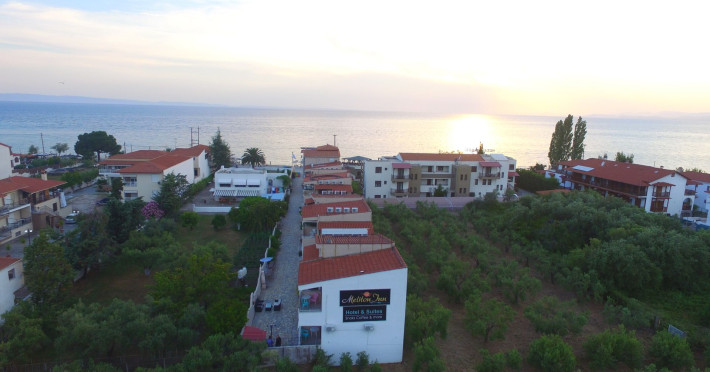 Meliton Inn Hotel & Suites is a family run hotel which is located in front of the “Blue Flag” awarded Paradissos beach, just a short breath distance from cosmopolitan Neos Marmaras. The 4 bungalows consist of 25 rooms with private balcony, 1 Junior suite, 1 Executive suite and 1 big apartments with kitchen. On the first building you will find the new sea view Lounge-bar where you can enjoy your daily coffees, refreshments and a big variety of snacks.Moreover don’t miss the opportunity to have a cocktail or drink by watching the fabulous sunset.
