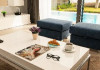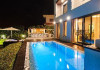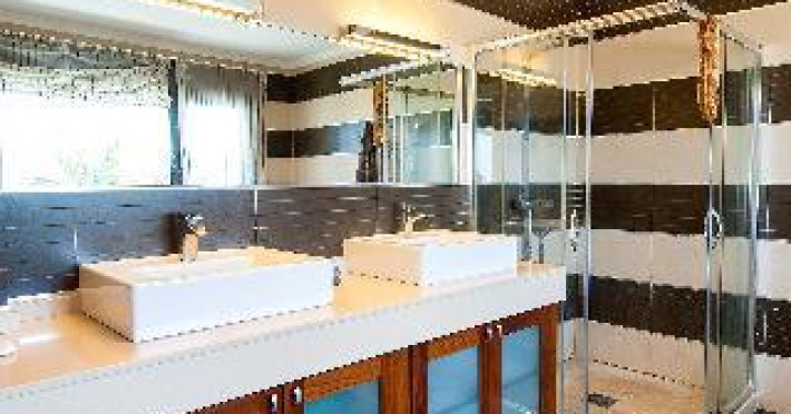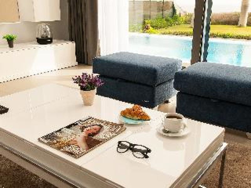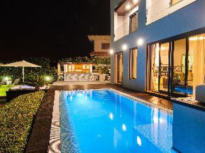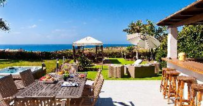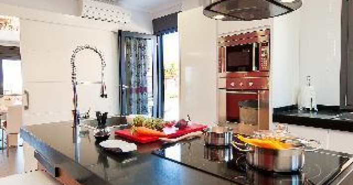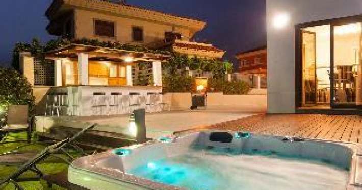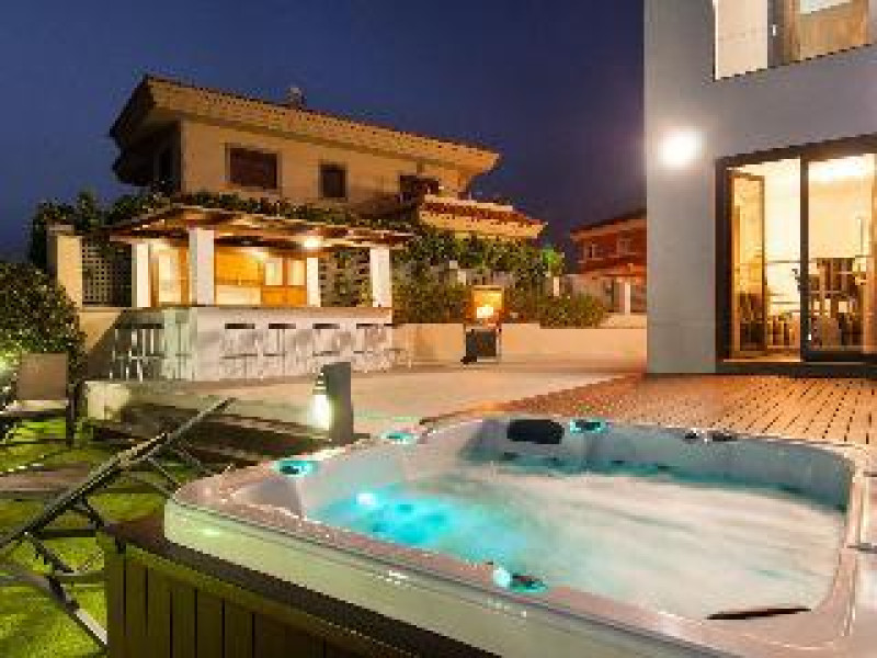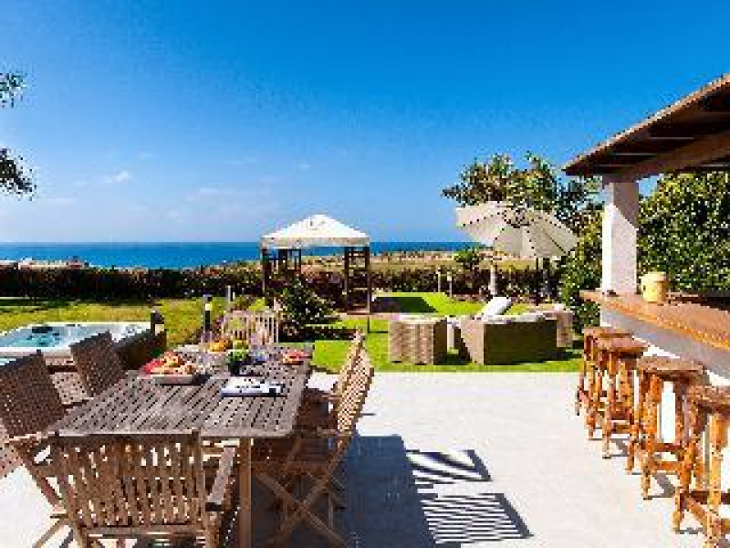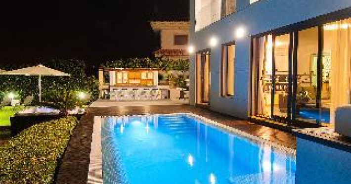 Large, modern, luxurious villa "Meloneras AC27". House Equipment: whirlpool, air conditioning, solarium. Access & Parking: parking by the house. All-season motor access to the house. Situation: quiet, sunny position. View from the apartment of the sea. Surroundings of the house: garden (private use, 100 m2), swimming pool (private use, heated), barbecue (private use). Pool heating is extra (40 euros/night) to be requested at least 1 week before checking in and to be paid on spot. Late arrivals will have an extra cost to be paid in cash: 20:30-22:00: 30€, 22:00-00:00: 50€, 00:00-01:30: 80€. 5-room house, detached, for 8 people, 200 m2 on 3 levels, modern and luxurious furnishings. Living room with satellite TV, DVD, hi-fi system and dining-table. Smoking not allowed. Internet (DSL/LAN). Sleeping room with 1 double bed. Sleeping room with 2 single beds. Sleeping room with 2 single beds. Sleeping room with 2 single beds. Kitchen with 3 hot plates, micro wave, oven, dining table, dinette, dishwasher, fridge and deep freezer. Bath/WC, shower/WC and bath/shower/WC. Balcony 4 m2, terrace 20 m2, patio 900 m2, terrace furniture, 6 deck chairs. Other equipment: safe, children's high chair, hair dryer, iron, washing machine, dryer, whirlpool. Wi-Fi (extra: 6 euros/day) to be paid on spot.