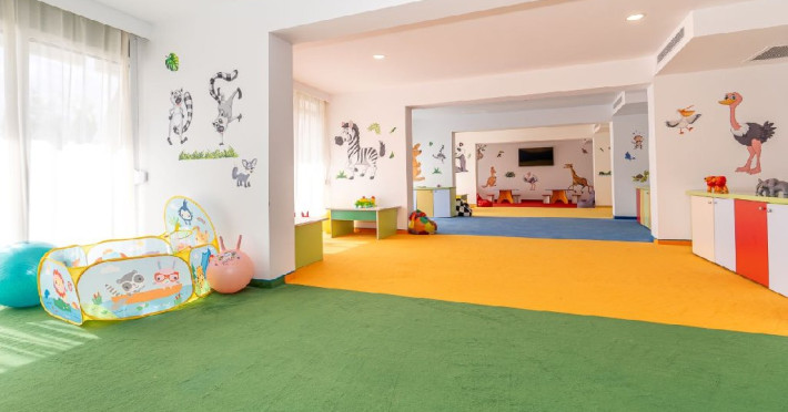 Dotari camere Camera dubla matrimoniala cu o suprafata de aproximativ 15 mp, pat matrimonial (180/190 cm), sistem de acces in camera pe baza de cartela/bratara, AC, TV , telefon, seif, baie cu cabina de dus, uscator de par, cosmetice hoteliere, prosoape de plaja, balcon, minibar contra cost. Intr-o camera dubla se poate adauga maxim un pat suplimentar(pat pliant) sau un patut pentru bebe. Camera dubla poate gazdui 2 adulti si 1 copil. Camera Family cu o suprafata de aproximativ 30 mp, are doua dormitoare comunicante, ambele cu baie proprie cu dus si pat matrimonial (180/190 cm), sistem de acces in camera pe baza de cartela/bratara, AC, TV, telefon, seif, uscator de par, prosoape de plaja, cosmetice hoteliere, balcon, minibar contra cost. Acest tip de camera nu suporta adaugarea unui pat suplimentar. Camera dubla family poate gazdui pana la 4 adulti. Camera Dubla King cu Jacuzzi cu o suprafata de aproximativ 20 mp, pat matrimonial (180/190cm) si canapea extensibila (140/190 cm), sistem de acces in camera pe baza de cartela/bratara, AC, TV, telefon, seif, baie cu cabina de dus, uscator de par, cosmetice hoteliere, prosoape de plaja, terasa cu jacuzzi, minibar contra cost. Acest tip de camera nu suporta adaugarea unui pat suplimentar. Camera dubla king poate gazdui 2 adulti si 2 copii sau 3 adulti. Apartamentul Junior Suite cu o suprafata de aproximativ 30 mp, are o camera de zi cu canapea extensibila si dormitor cu pat matrimonial, . Apartamentul dispune de o singura baie cu dus, sistem de acces in camera pe baza de cartela/bratara, AC, TV, telefon, seif, uscator de par, cosmetice hoteliere, prosoape de plaja, balcon cu vedere la statiune, minibar contra cost. . Acest tip de camera nu suporta adaugarea unui pat suplimentar. Acesta este destinat cazarii a 2 adulti si 2 copii sau 3 adulti. Apartamentul Junior Suite cu Jacuzzi cu o suprafata de aproximativ 30 mp, are o camera de zi cu canapea extensibila si un dormitor cu pat matrimonial (180/190cm), sistem de acces in camera pe baza de cartela/ratara, AC, TV, telefon, seif, o singura baie cu cabina de dus, uscator de par, cosmetice hoteliere, prosoape de plaja, terasa cu jacuzzi, minibar contra cost. Apartamentul dispune de o terasa generoasa cu jacuzzi. Acest tip de camera nu suporta adaugarea unui pat suplimentar si este destinat cazarii a 2 adulti si 2 copii sau 3 adulti.
