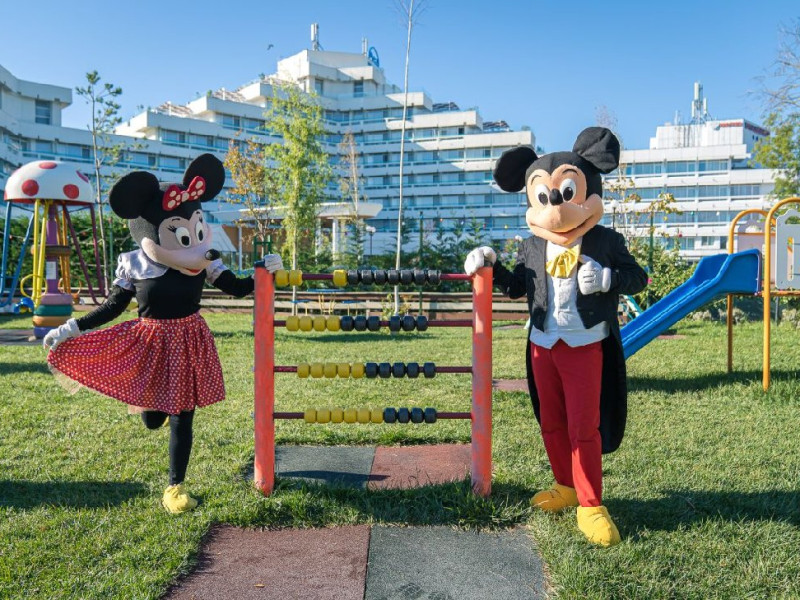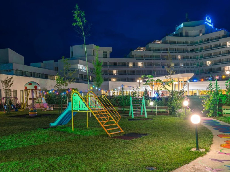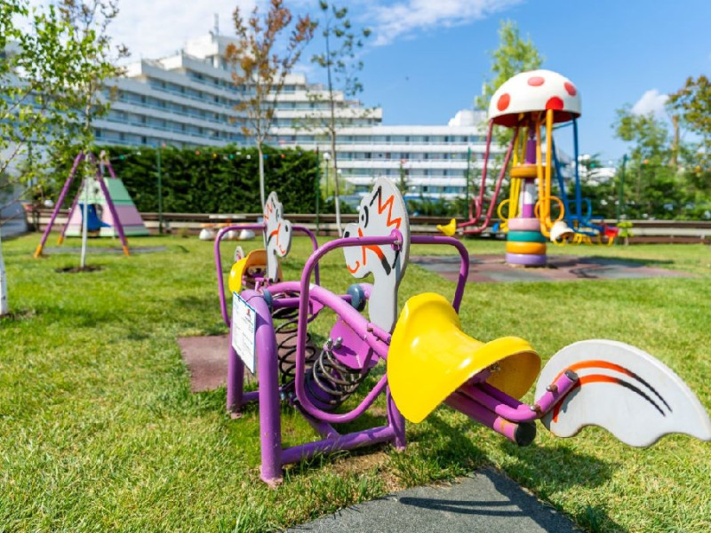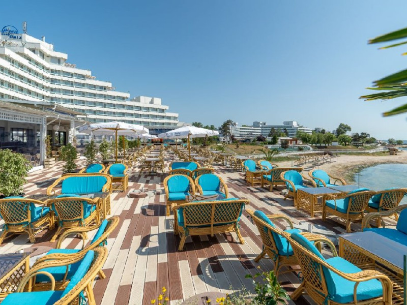 - micul dejun se serveste zilnic intre orele 07.30 - 10:00 - pranzul se serveste zilnic intre orele 13:00 - 15:00; - gustarea se serveste zilnic intre orele 11:00 - 12:00; 16:30 - 17:30 - cina se serveste zilnic intre orele 19:00-21:00 - apa plata, apa minerala, cafea si bauturi racoritoare oferite la restaurant si pe terasa intre orele 07:30 - 22:00. - vinul casei si bere draft oferite la restaurant si pe terasa intre orele 11:00 - 22:00; - lichior, vermut, vodca, coniac, oferite la restaurant in timpul mesei de pranz (13:00 - 15.00) si cina (19:00 - 21:00). Bauturile incluse in pachet nu sunt imbuteliate, acestea se servesc in pahare de unica folosinta(plastic/carton). ** Serviciile din ziua sosirii AZncep cu pranzul (13:00 - 15:00), moment in care veti primi bratara care va ofera acces la facilitatile resortului mentionate in pachetul all inclusive. Alocarea camerelor se efectueaza incepand cu ora 16:00 si poate dura pana la ora 20:00. Check-out-ul se realizeaza cel tarziu la ora 11:00 si presupune predarea cardurilor de acces si a bratarilor. Dupa aceasta ora nu va mai fi permis accesul la facilitatile resortului. Servicii incluse (all inclusive): - Piscina pentru adulti; - Umbrele si sezlonguri la piscina in limita locurilor disponibile (alocarea sezlongurilor se face in ordinea sosirii la piscina); - Parcare AZn limita locurilor disponibile; - Parc de joaca pentru copii, - mini Aquapark pentru copii; - Piscina pentru copii incalzita; - Piscina cu tobogane acvatice - 3 canale, - Teatru de vara pentru copii; - Club animatie copii; - Jocuri si concursuri adulti si copii (piscine, terasa); - Animatori; - Muzica live; - Program artistic; - Umbrele si sezlonguri la plaja AZn limita locurilor disponibile (alocarea sezlongurilor se face in ordinea sosirii la plaja); prosoape plaja/piscina; - Internet; - Pat bebe tip tarc la cerere, in limita disponibilitatii; - Beach Bar All inclusive. Servicii optionale (contra cost): - Bar piscina a la carte; - Minibar in camera.