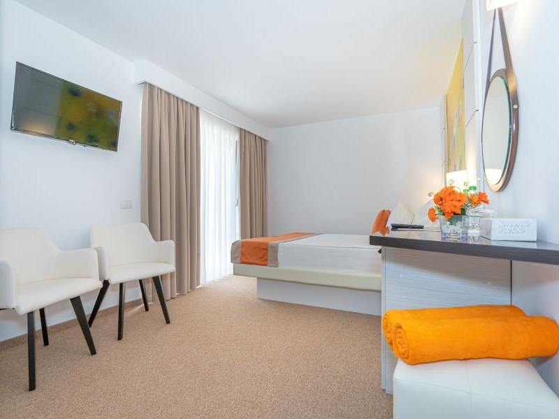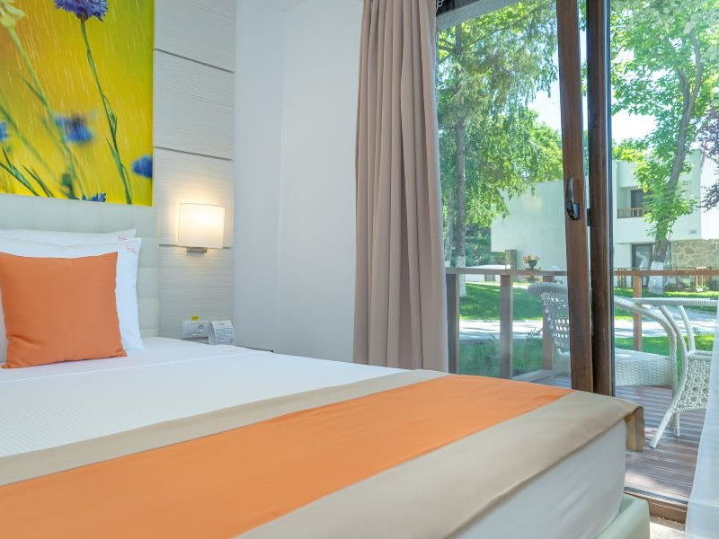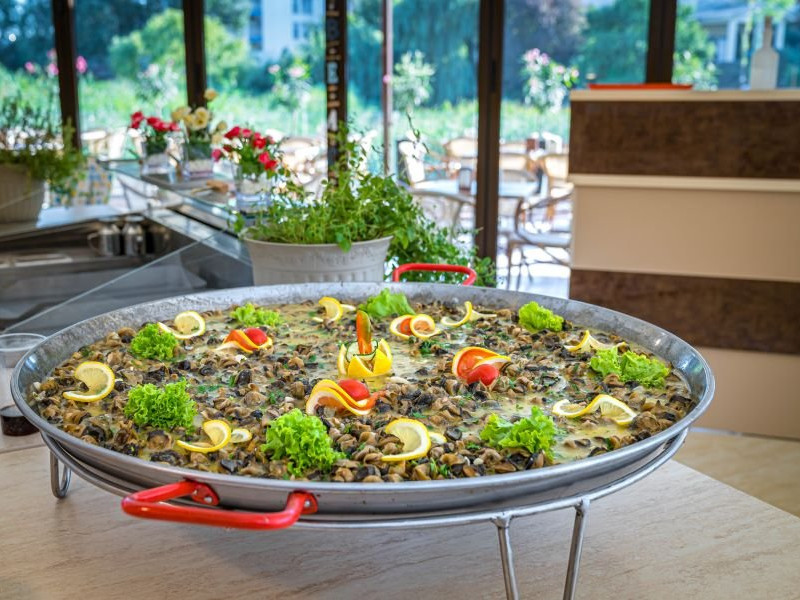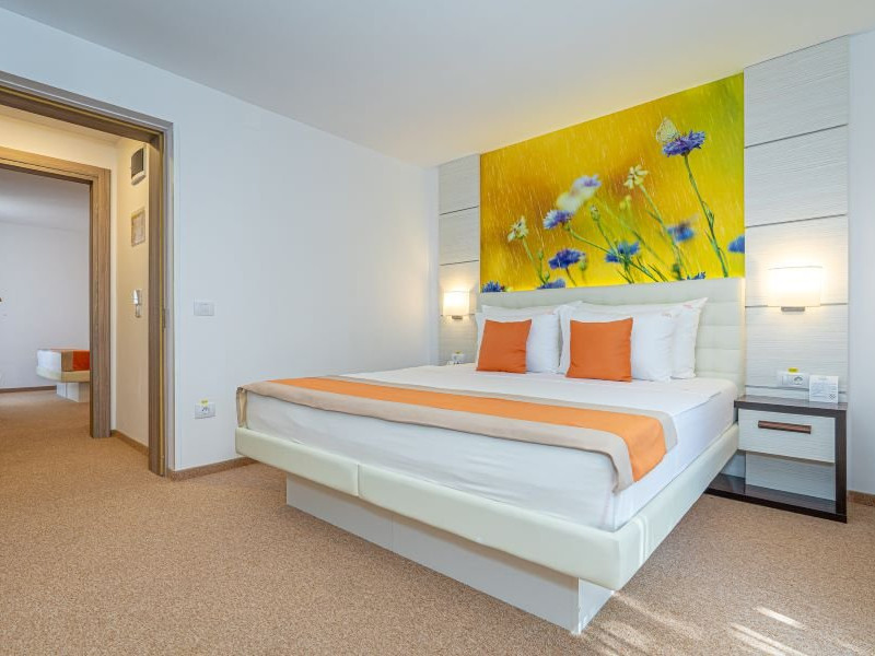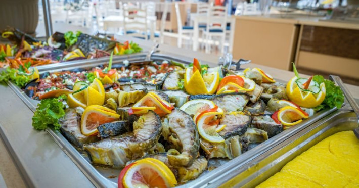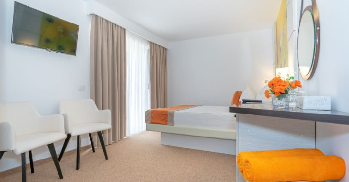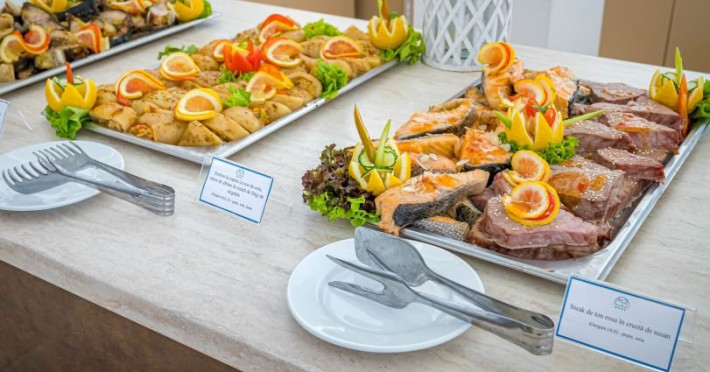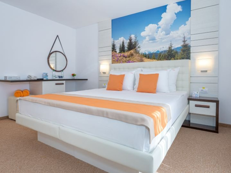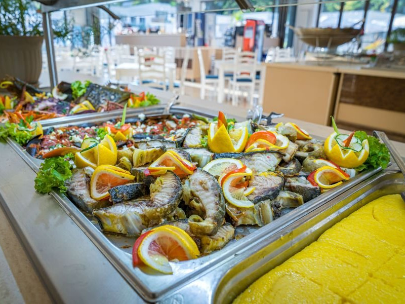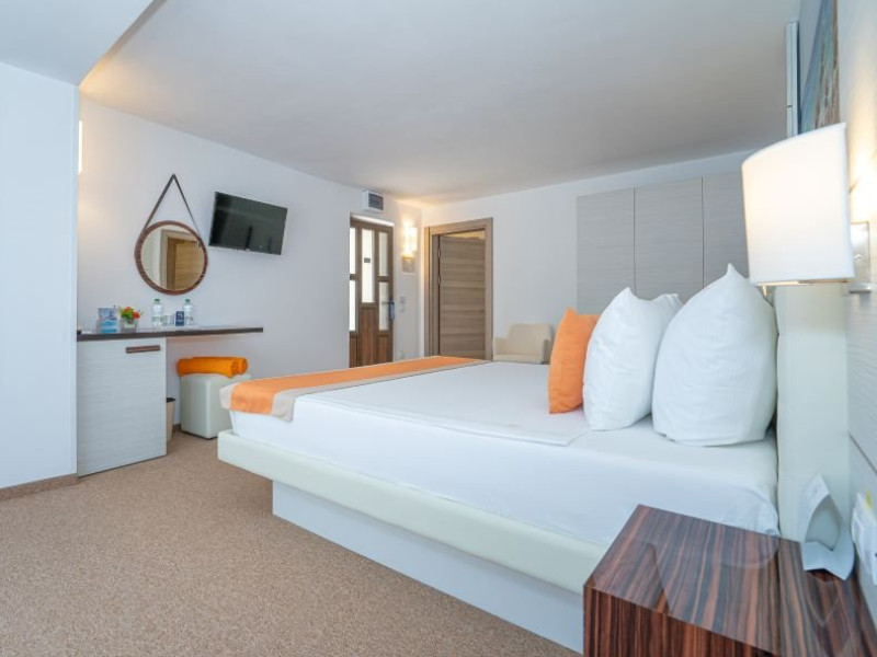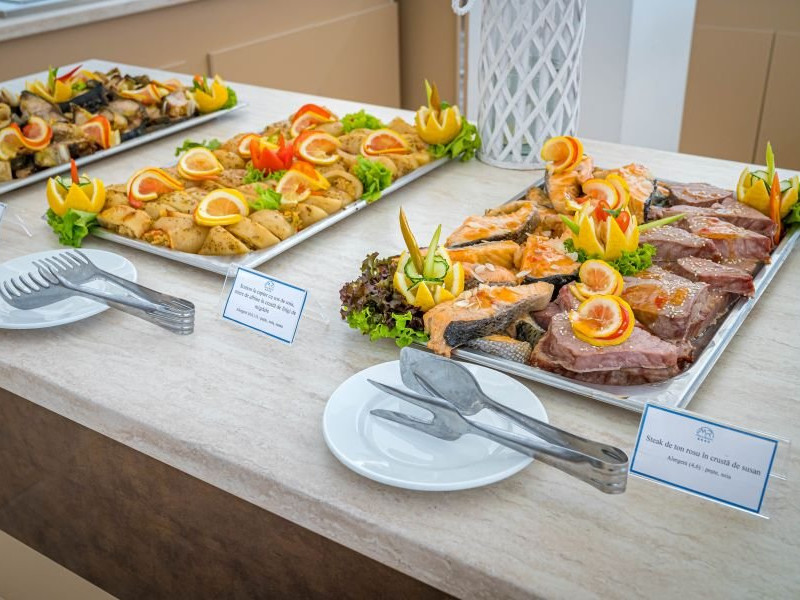 Servicii masa MASA: - restaurant propriu in sistem bufet suedez. In incinta restaurantului, accesul este permis doar cu o tinuta decenta, fara obiecte si accesorii de plaja. Servicii incluse (all inclusive): - Piscine pentru adulti; - Umbrele si sezlonguri la piscine in limita locurilor disponibile (alocarea sezlongurilor se face in ordinea sosirii la piscina); - Parcare in limita locurilor disponibile; - Parc de joaca pentru copii, mini Aquapark pentru copii; - Piscina pentru copii incalzita; - Piscina cu tobogane acvatice - 3 canale; - Teatru de vara pentru copii; - Club animatie copii; - Jocuri si concursuri adulti si copii (piscine, terasa); - Animatori; - Muzica live; - Program artistic; - Tenis de masa; Rummy;Table; Sah; Biliard; - Umbrele si sezlonguri la plaja in limita locurilor disponibile (alocarea sezlongurilor se face in ordinea sosirii la plaja); - Prosoape plaja/piscina; - Internet; - Pat bebe tip tarc la cerere, in limita disponibilitatii; - Beach Bar All inclusive. Servicii optionale (contra cost): - SPA (Piscina interioara cu cascada cervicala si inot impotriva curentului, Sauna filandeza, Salina, Biosauna, Baie de vapori, Dusuri emotionale, Bazine kneipp, Cabinet masaj single si in cuplu , Cabinet cosmetic; Fantana de gheata;); - Bar piscina a la carte; - Minibar in camera. Servicii de masa all inclusive (in regim bufet, oferite la restaurant): - micul dejun se serveste zilnic intre orele 07:30 - 10:00 - pranzul se serveste zilnic intre orele 13:00 - 15:00; - gustarea se serveste zilnic intre orele 11:00 - 12:00; 16:30 - 17:30; - cina se serveste zilnic intre orele 19:00-21:00; - apa plata, apa minerala, cafea si bauturi racoritoare oferite la restaurant si pe terasa intre orele 7:30 - 22:00. Bauturile incluse in pachet nu sunt imbuteliate. - vinul casei si bere draft oferite la restaurant si pe terasa intre orele 11:00 - 22:00; - lichior, vermut, vodca, coniac, oferite la restaurant in timpul mesei de pranz (13:00 - 15.00) si cina (19:00 - 21:00); IMPORTANT: Serviciile din ziua sosirii incep cu pranzul ( 13:00 - 15:00), moment in care veti primi bratara care va ofera acces la facilitatile resortului mentionate in pachetul all inclusive. Este interzisa parasirea restaurantului sau terasei cu alimente si/sau bauturi, vesela, tacamuri, etc. Minibarul este disponibil in toate camerele contra cost.