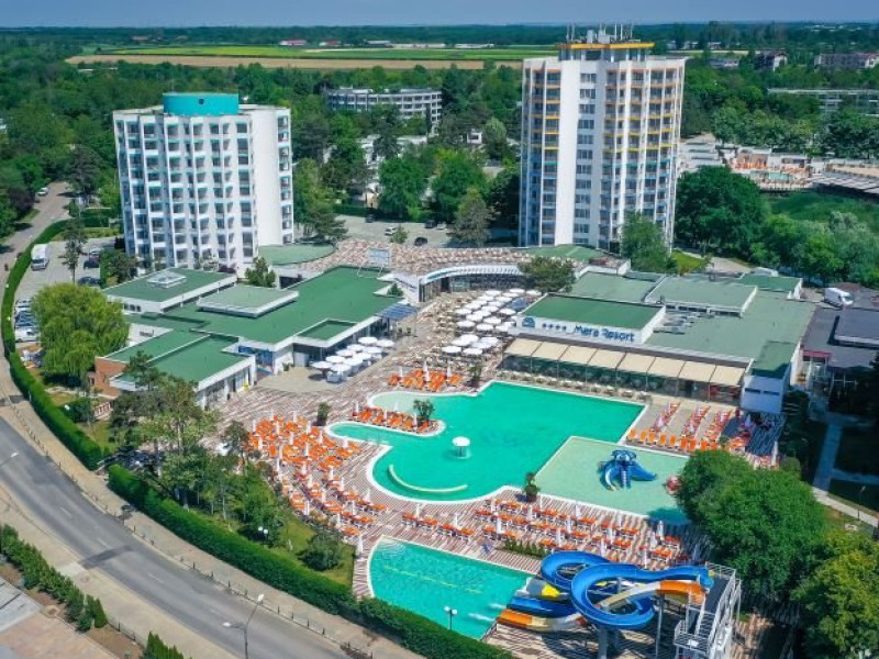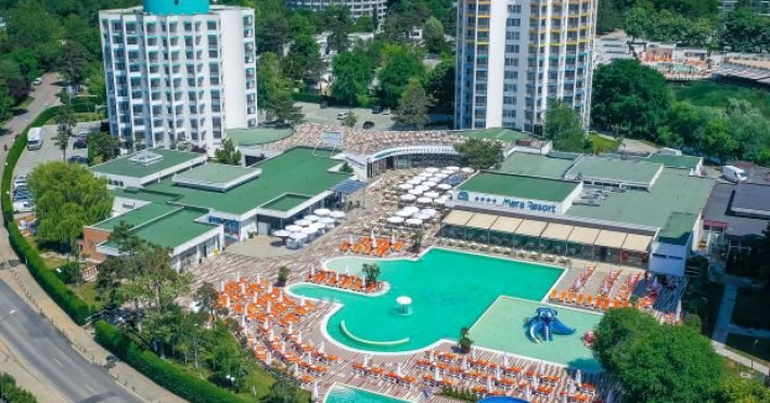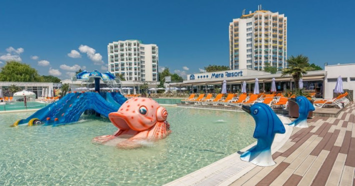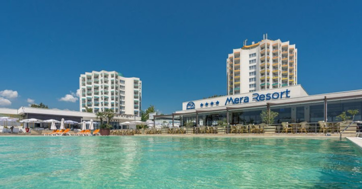 HOTEL MERA RESORT situat in centrul statiunii Venus, este alcatuit din 2 corpuri de hotel - Mera Sky si Mera Blue - si un complex de 49 de vile cu accente mediteranene - Mera Villas.Cu 525 de spatii de cazare si un total de 1050 de locuri de cazare. Cele 2 hoteluri sunt conectate printr-o receptie comuna, un spatiu larg, modern si rafinat, unde stilul si eleganta sunt in stransa legatura cu preocuparea permanenta a intregii echipe Mera pentru confortul si buna dispozitie a oaspetilor sai.