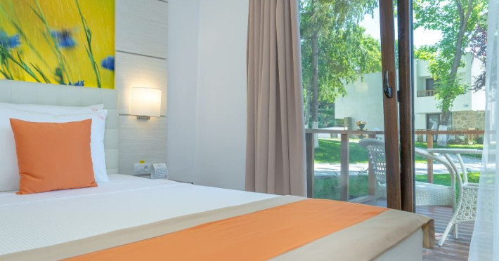 Camerele din Mera Sky si Mera Blue au vedere spre mare sau spre lacul Venus (repartitia se face la Receptie, in momentul cazarii, in functie de disponibilitate). Camerele duble cu o suprafata de 15,20 mp, pat matrimonial (180/190 cm) sau 2 paturi twin (80/190 cm), sistem de acces pe baza de cartela, baie cu dus, aer conditionat, balcon cu scaune si masuta, seif, televizor LCD, internet,, telefon, minibar (produse contra cost), uscator de par, cosmetice hoteliere, prosoape pentru plaja, uscator de rufe, mocheta. Camerele duble cu doua paturi (twin) sunt situate doar la parter. In acest tip de camera se poate adauga pat suplimentar (contra-cost), dar acesta v-a reduce semnificativ spatiul in camera! Junior Suite, cu o suprafata de 28.44 mp, sunt alcatuite din living cu canapea extensibila 160x200 cm) si dormitor cu pat matrimonial (180x190 cm). Fiecare camera dispune de baie proprie si balcon. Pot gazdui 2 adulti si 2 copii sau 3 adulti. Nu se accepta adaugarea de pat suplimentar. Mera Villas: Complexul Mera Villas este alcatuit din 49 de vile. Camerele duble cu o suprafata de 15,20 mp, pat matrimonial (160/190 cm), sistem de acces pe baza de cartela, minibar (produse contra cost), baie cu dus, aer conditionat, terasa cu scaune si masuta, seif, televizor LCD, internet, telefon, uscator de par, mocheta, uscator de rufe. Pot gazdui 2 adulti si 1 copil. Acest tip de camera nu suporta adaugarea de pat suplimentar. Camerele duble King cu o suprafata de 20 mp si au in dotare o canapea extensibila (140/190 cm) si un pat matrimonial (180/190 cm). Au aceleasi dotari ca si camerele duble. Pot gazdui 2 adulti si 2 copii sau 3 adulti. Acest tip de camera nu suporta adaugarea de pat suplimentar. Junior Suite cu o suprafata de 28.25 mp si sunt alcatuite din living cu canapea extensibila (160x190 cm) si dormitor cu pat matrimonial (160/190 cm). Fiecare camera dispune de baie proprie si balcon. Pot gazdui 2 adulti si 2 copii sau 3 adulti. Acest tip de camera nu suporta adaugarea de pat suplimentar. Apartamentele cu 2 dormitoare - Formate din 2 dormitoare decomandate, fiecare cu pat matrimonial (160x190 cm), baie proprie si terasa. Au aceleasi dotari si au o suprafata totala de 30 mp. Pot gazdui pana la 4 adulti. Acest tip de camera nu suporta adaugarea de pat suplimentar. Suitele cu doua camere comunicante - Formate din 2 dormitoare comunicante, fiecare cu pat matrimonial (160x190 cm), baie proprie si terasa. Au aceleasi dotari si au o suprafata totala de 30 mp. Pot gazdui pana la 4 adulti. Acest tip de camera nu suporta adaugarea de pat suplimentar. Apartamentele cu 3 camere - Formate din 2 dormitoare cu pat matrimonial (180x190 cm) si baie proprie si un living cu canapea extensibila (160x200 cm). Au aceeasi dotari si au o suprafata de 48.25 mp. Pot gazdui pana la 5 adulti. Acest tip de camera nu suporta adaugarea de pat suplimentar.