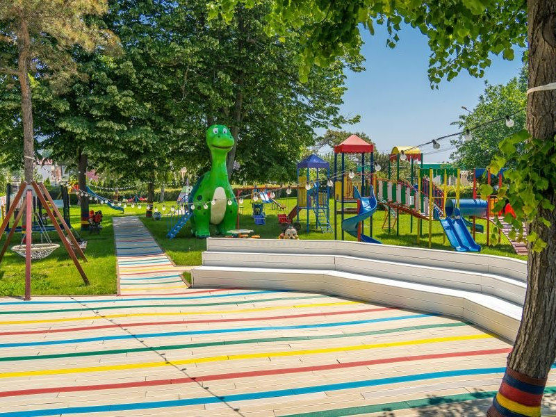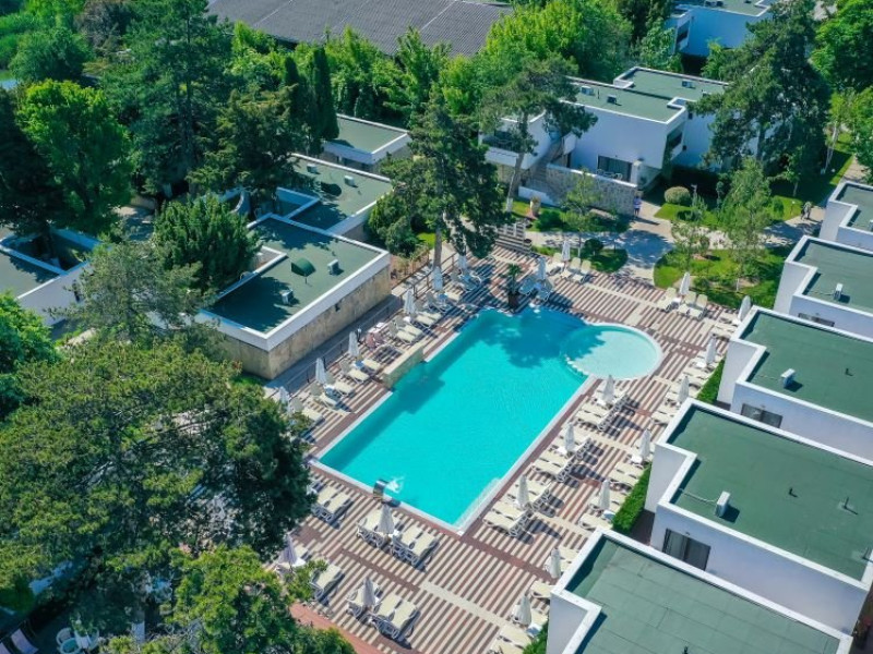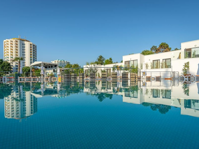 Dotari si servicii Piscina principala exterioara este una dintre cele mai frumoase din zona, avand o suprafata de 1000 mp si un design modern. Va puteti relaxa pe sezlongruile confortabile de pe marginea piscinei sau puteti profita de nenumaratele atractii acvatice: dusurile cervicale, banchetele cu hidromasaj si gheizerele vor detensiona musculatura spatelui si zona lombara. Aqua vortex-ul special gandit pentru doritorii de senzatii tari, permite inotatorilor rezistenti sa mearga impotriva curentului sau pur si simplu sa se lase trasi de flux. Piscina pentru copii are o adancime de 50 cm si este dotata cu un mini Aqua Park, detine o piscina cu tobogane acvatice cu 3 canale pentru cei mari. Piscina pentru copii este special amenajata astfel incat activitatile desfasurate sa beneficieze de cele mai inalte standarde de siguranta. La piscine se desfasoara pe tot parcursul zilei diverse programe: aqua gym, concursuri, spectacole si alte surprize. Piscinele secundare sunt situate in zona Mera Villas, o adevarata oaza de liniste, fiind optiunea ideala pentru a-ti petrece zilele insorite de vara intr-o atmosfera relaxanta. Rasfatul unei zile la piscina este o experienta in sine. Accesul este permis intre orele 08:00 - 20:00 Plaja Mera Resort - este situata la aproximativ 500 m avand nisip fin, apa curata si intrare lina in mare, dispunand de beach bar gratuit. Plaja privata este situata la 500 m si dispune de beach bar gratuit. Oaspetii Mera Resort au la dispozitie in mod gratuit sezlonguri, umbrele si masute la plaja in limita locurilor disponibile.