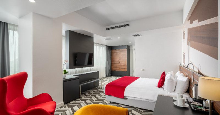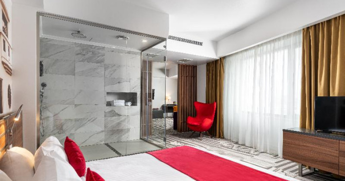 6 junior suites, 7 suites, 57 single rooms and 27 double rooms are located on 12 storeys and can be reached by lift. Guests are warmly welcomed by English- and French-speaking staff at the 24-hour reception desk in the lobby. Check-in/check-out service is available round the clock. Amenities include a baggage storage service and a safe. Wireless internet access is provided in public areas. The tour desk offers assistance with booking excursions. The hotel has a range of facilities for guests with disabilities. The hotel has wheelchair-accessible facilities. There are a number of shops as well. Additional facilities include a TV room. Guests arriving by car can park their vehicles in the garage (for a fee) or in the car park. Further services and facilities include a 24-hour security service, a car hire service, medical assistance, a transfer service, room service, an alarm call service, a laundry service, a coin-operated laundry and a hotel shuttle bus. A bicycle hire service provides all the necessary equipment for exploring the surrounding area. The business centre is on hand for guests business requirements and provides a fax machine.