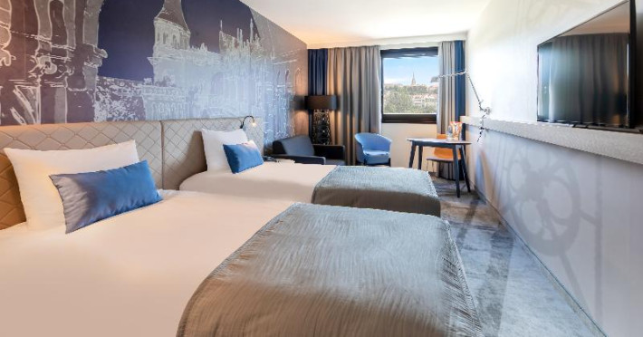 390 non-smoking rooms, including 7 suites and 381 double rooms, are located on 8 storeys and can be reached by 8 lifts. The reception desk is open round the clock. Amenities include a baggage storage service, safe, currency exchange service and cash machine. Wireless internet access (for a fee) is provided in public areas. The tour desk offers assistance with booking excursions. The hotel has a range of facilities for guests with disabilities. The hotel has wheelchair-accessible facilities. A number of shops, including a supermarket and souvenir shop, are great for shopping or just browsing. Additional amenities include a newspaper stand and a TV room. Guests arriving by car can park their vehicles in the garage (for a fee) or in the car park (for a fee). Further services and facilities include a 24-hour security service, a car hire service, medical assistance, a transfer service, room service (for a fee), a laundry service, a coin-operated laundry, a page service and a hotel shuttle bus. Cyclists can make use of the bicycle storage area and hire service. A business centre with fax machine and projector is available. Lectures, presentations and meetings can be held in one of the 7 conference rooms.
