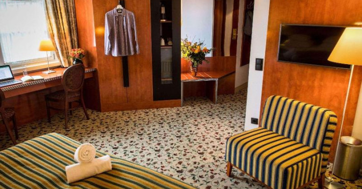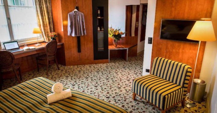 The hotel was built in 1816. The hotel has 21 junior suites, 12 suites, 31 single rooms and 137 double rooms, which are located on 4 storeys and are reachable by 2 lifts. The reception desk is open round the clock. Amenities include a cloakroom, baggage storage service, safe and currency exchange service. Wireless internet access (for a fee) allows guests to stay connected while on holiday. The tour desk offers assistance with booking excursions. The hotel offers various facilities for guests with disabilities. A number of shops, including a supermarket and souvenir shop, are great for shopping or just browsing. A garden provides extra space for rest and relaxation in the open air. Additional facilities include a library. Guests arriving by car can park their vehicles in the garage (for a fee) or in the car park (for a fee). Further services and facilities include a 24-hour security service, a babysitting service, a car hire service, medical assistance, a transfer service, room service, a laundry service, a hairdresser, a coin-operated laundry, a page service and a hotel shuttle bus. Bicycle storage is available to guests. There is a bike hire service as well. Complimentary newspapers are available. A business centre with fax machine and projector is available. Lectures, presentations and meetings can be held in one of the 4 conference rooms.