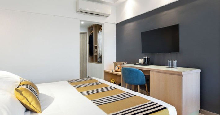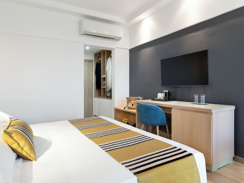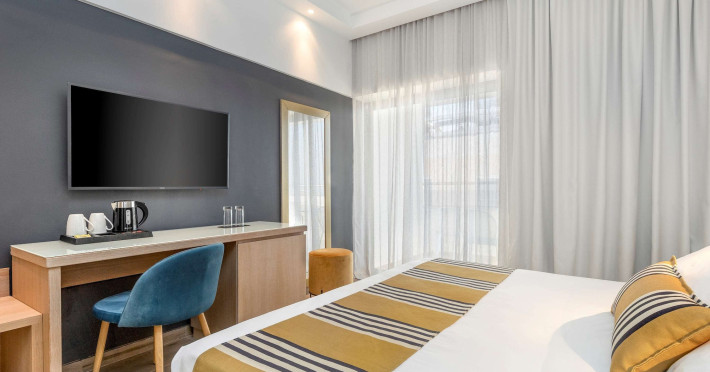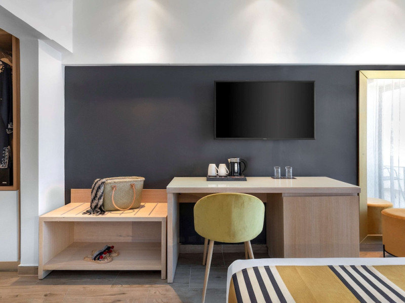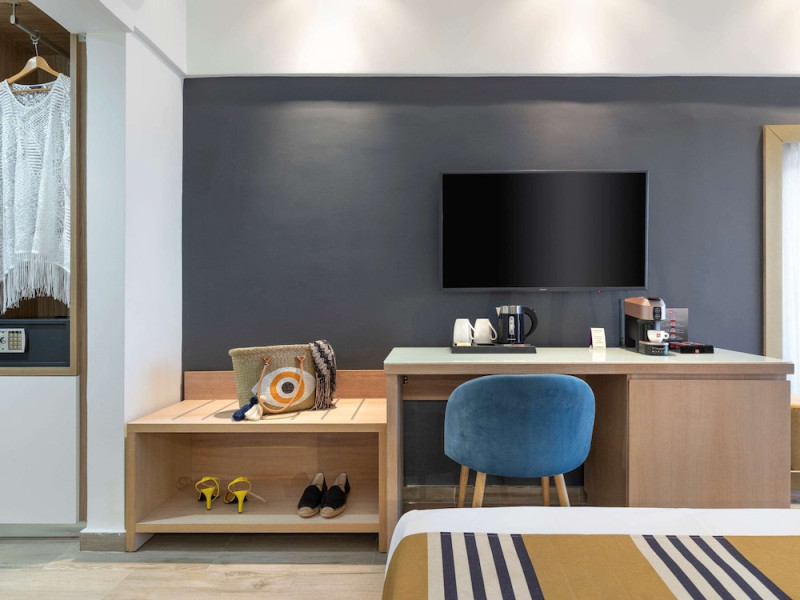 Located in the heart of Rhodes, Mercure Rhodes Alexia Hotel & Spa is situated just 30 meters from the beach and 500 meters from the center of Rhodes Town. It is within a 15-minute walk of Elli Beach and Mandraki Port. The hotel features a seasonal outdoor pool, spa with massage services, health club, sauna, hair salon, bar/lounge, poolside bar, 3 beach bars, café, and an a la carte restaurant serving Greek and international dishes. Guests can enjoy an American buffet breakfast. The minimally decorated rooms and studios offer private balconies or terraces, flat-screen TVs, and private bathrooms with showers and hair dryers. Free self-parking, a 24-hour front desk, multilingual staff, dry cleaning/laundry services, and wireless internet access (surcharge) are available. Rhodes International Airport is 12 km away. The hotel is closed between January 1 and April 30. The Mercure Rhodes Alexia Hotel & Spa is a Beach Resort, City hotel, Tourist hotel. The nightlife/restaurants are within walking distance from the hotel.