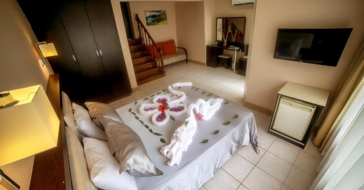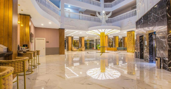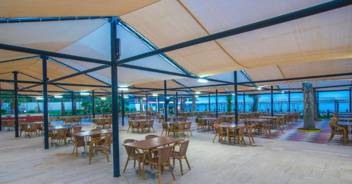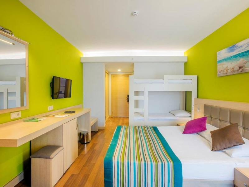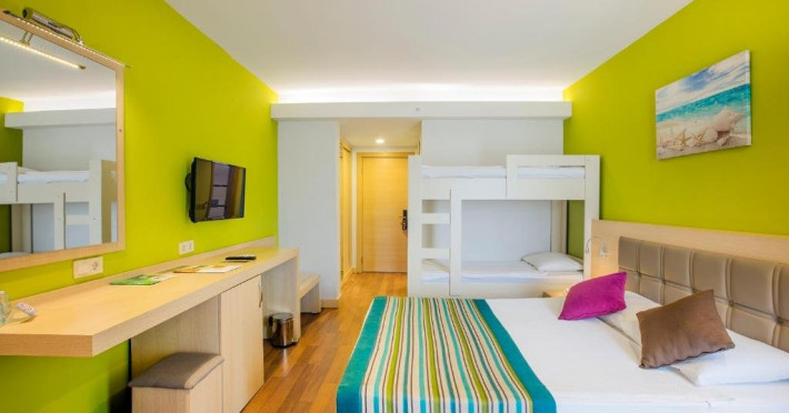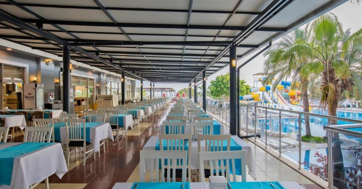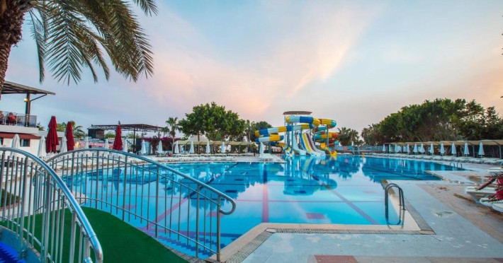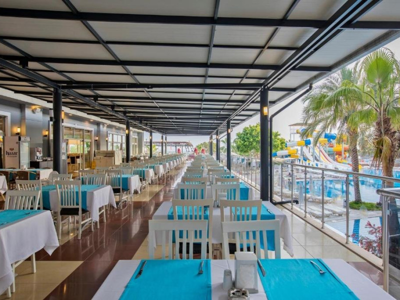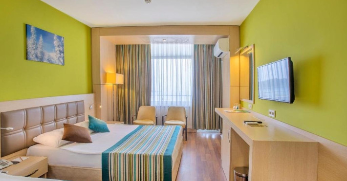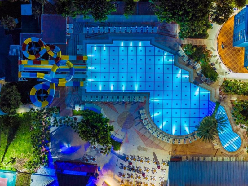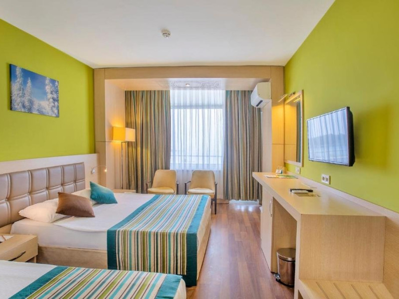 Facilitati hotel: Hotelul pune la dispozitia turistilor: receptie 24h, restaurant a la carte, bar, snack bar, pool bar, piscina, aqua parc, spa cu sauna, baie turceasca, masaj, centru fitness, tenis de masa, tenis de camp, darts, loc de joaca pentru copii, miniclub pentru copii, programe de divertisment, competitii, spectacole, plaja privata cu sezlonguri si umbrele gratuite.