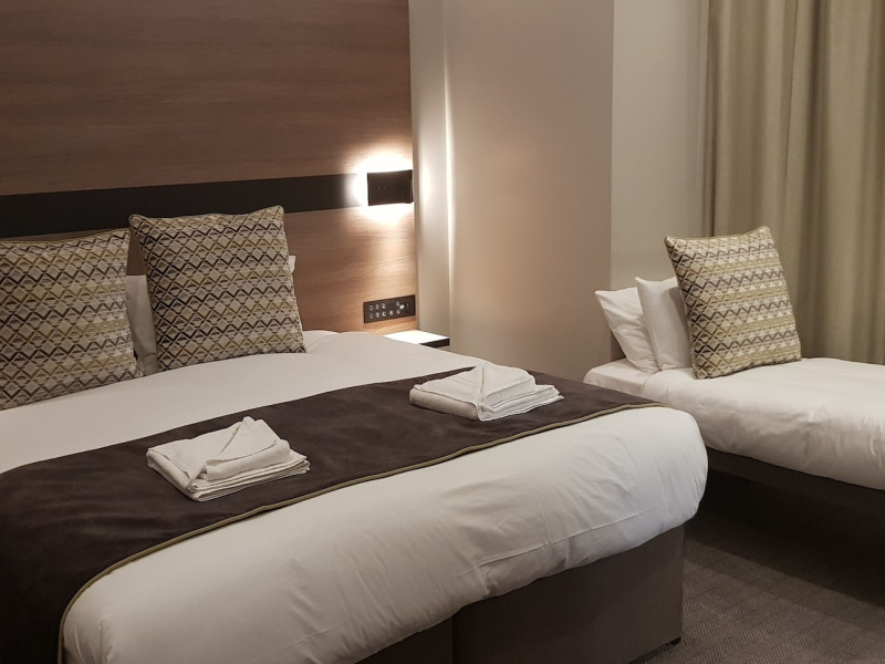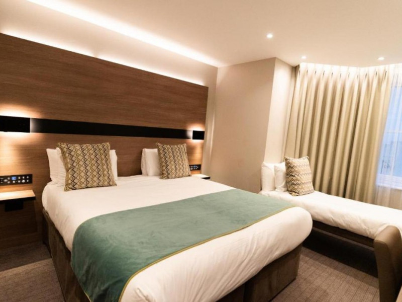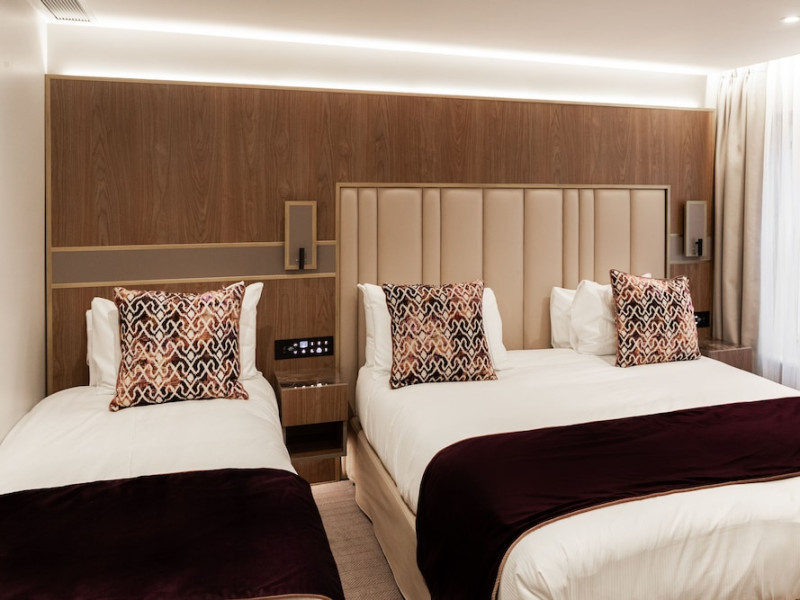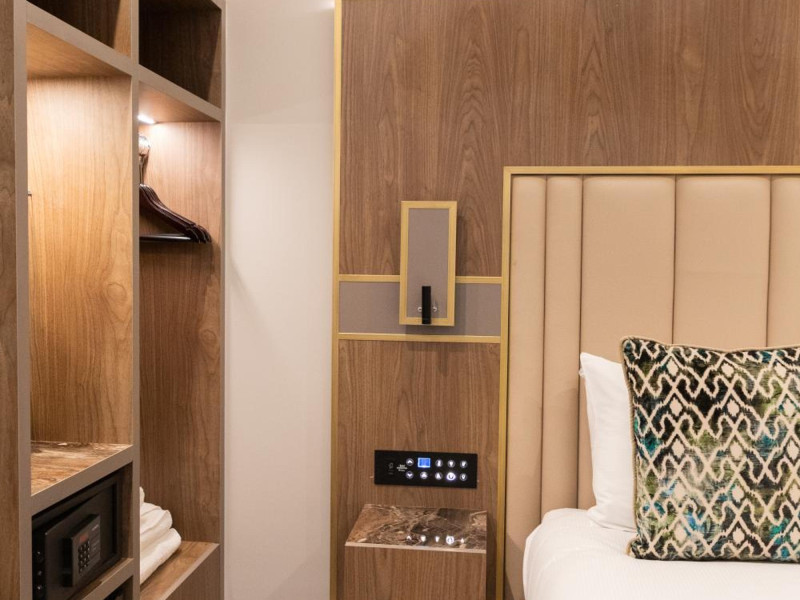 The Merit Kensington Hotel is located in central London, a short drive from Stamford Bridge Stadium and Hyde Park. It offers 25 air-conditioned rooms, each with a flat-screen TV, private bathroom (with bathtub or shower), hairdryer, safe, and desk. Complimentary Wi-Fi and tour/ticket assistance are available. A buffet breakfast is available daily (fee applies). The hotel features a 24-hour front desk with multilingual staff. Buckingham Palace and Piccadilly Circus are within a 10-minute drive. Nearby attractions (distances approximate): Cromwell Road (0.6km), Kensington High Street (1.2km), Natural History Museum (1.4km), Imperial College London (1.5km), Kensington Gardens (1.6km), Olympia Conference and Exhibition Centre (1.6km), Victoria and Albert Museum (1.8km), Science Museum (1.8km), Kensington Palace (2km), Royal Albert Hall (2.1km), Thames River (2.2km), Hyde Park (2.3km), Eventim Apollo (2.5km), Harrods (2.5km). Nearest airports: London City (LCY), Heathrow (LHR), Gatwick (LGW), Luton (LTN), Stansted (STN). The Merit Kensington Hotel is a hotel.