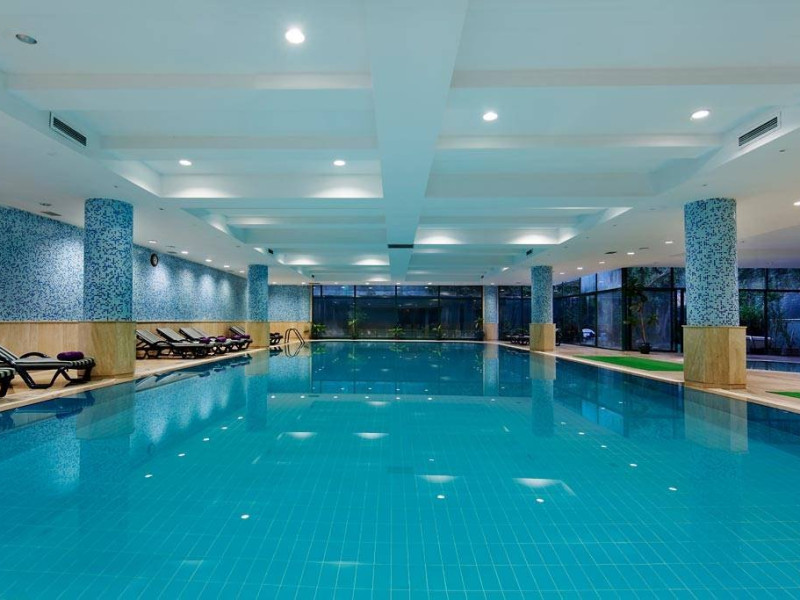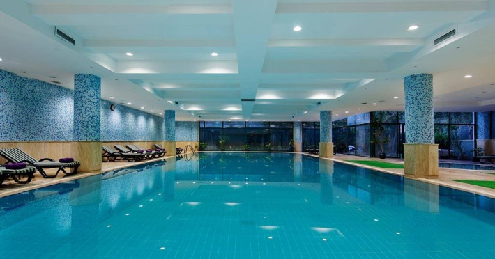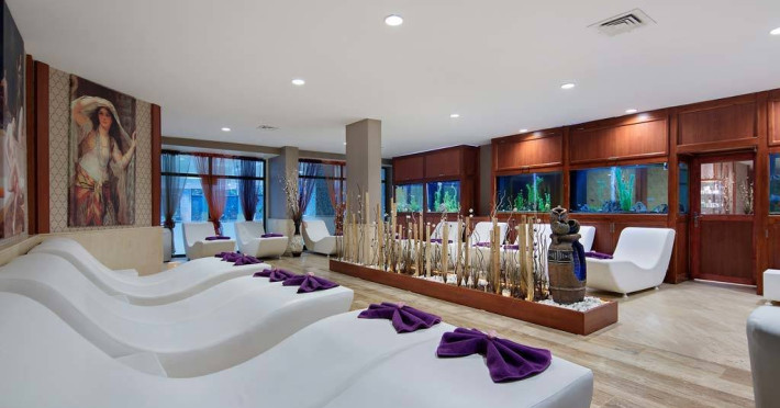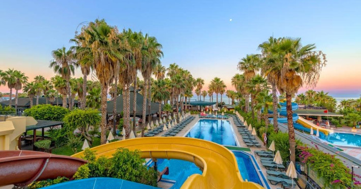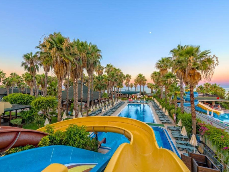 Facilitati hotel: Oaspetii beneficiaza de restaurant, baruri, piscine exterioare, piscina interioara, tobogane, spa, fitness, teren de tenis, billiard, mini club, piscina.