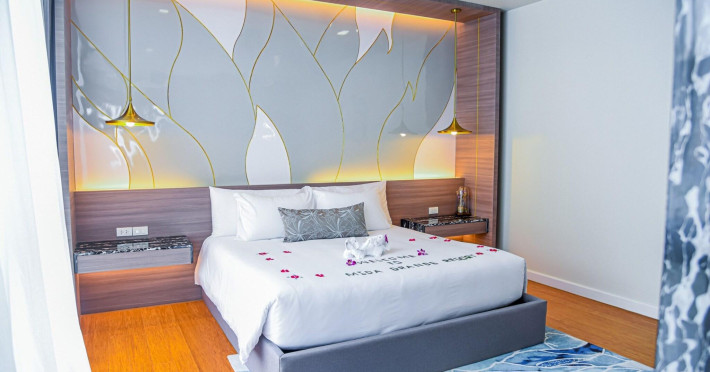 Located near Surin Beach in Choeng Thale, Mida Grande Resort Phuket offers accommodation with an outdoor swimming pool, fitness center, garden, and complimentary WiFi. The resort is within 1 kilometer of the town center and approximately 20 kilometers from Phuket International Airport. Guests can enjoy on-site dining at two restaurants and relax at three bars/lounges or two poolside bars. The resort features 6 outdoor swimming pools, a lazy river, a sauna, and an arcade/game room. Services include a 24-hour front desk, room service, concierge service, and complimentary parking. The air-conditioned rooms feature a seating area, a flat-screen TV with satellite channels, a safety deposit box, and a private bathroom with a shower, free toiletries, and a hairdryer. Some rooms offer a balcony and sea views. Buffet, continental, or Asian breakfast options are available. The resort maintains a sustainable policy. The Mida Grande Resort Phuket is a hotel.
