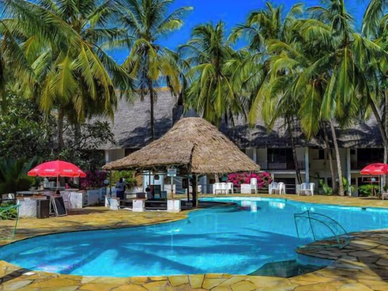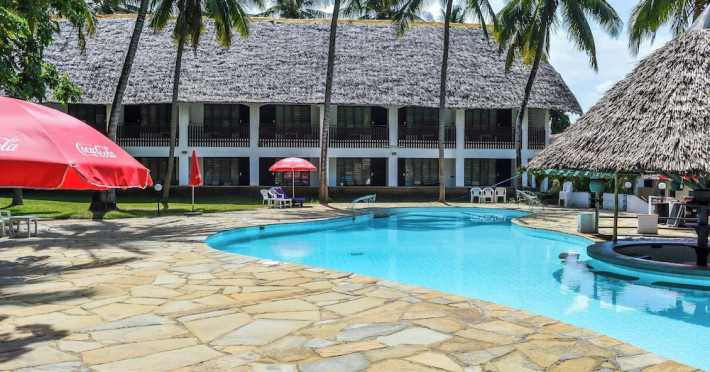 Located on the beach in Mombasa, Milele Beach Hotel is within a 15-minute drive of Bamburi Beach and Nyali Beach. It offers complimentary wireless internet access, concierge services, and a garden with scenic views. Guests can enjoy international cuisine at the Milele Restaurant, which offers garden views, or utilize 24-hour room service. Refreshments are available at the poolside bar or one of the bars/lounges. Buffet breakfasts are available daily from 7:00 AM to 9:30 AM for a fee. The hotel features a 24-hour front desk, laundry facilities, luggage storage, and a safe deposit box at the front desk. There are meeting rooms available for events. Free self-parking is available onsite. The air-conditioned guestrooms include flat-screen televisions with satellite programming, and bathrooms with showers, complimentary toiletries, and hair dryers. Conveniences include electric kettles and complimentary tea bags/instant coffee. Housekeeping is provided daily. Nearby attractions include Haller Park, and Nguuni Nature Sanctuary. The nearest airport is Mombasa (MBA-Moi Intl.). The Milele Beach Hotel is a hotel.