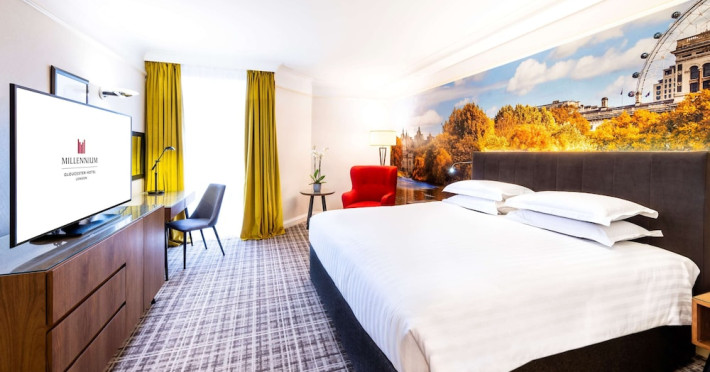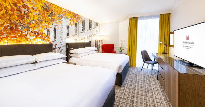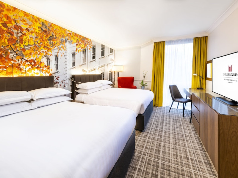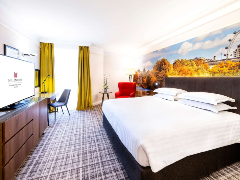 The Millennium Gloucester Hotel London is situated in Kensington, 100 meters from Gloucester Road Tube Station and a short walk from the Victoria and Albert Museum. Nearby attractions include the Natural History Museum, Kensington Palace, Hyde Park, and Kensington Gardens, all within walking distance. London Heathrow Airport is 45 minutes away via the Underground. The hotel offers 611 air-conditioned rooms with flat-screen satellite TVs, work desks, minibars, and en-suite bathrooms with complimentary toiletries. Dining options include South West 7, Humphrey's Bar, and the Korean Grill in Kensington. Amenities include a fitness center, complimentary Wi-Fi, concierge services, a fireplace in the lobby, a banquet hall, meeting rooms, and a conference center. Self-parking is available. To-go breakfasts are available for a fee. The Millennium Hotel and Conference Centre Gloucester London is a Tourist hotel. The nightlife/restaurants are easily accessible by taxi or bus from the hotel.