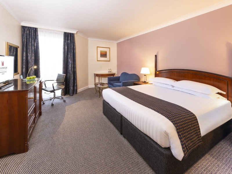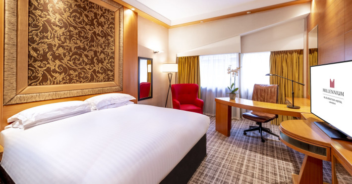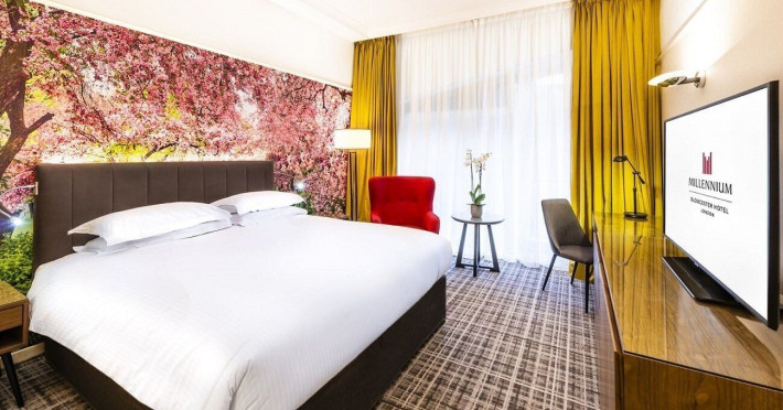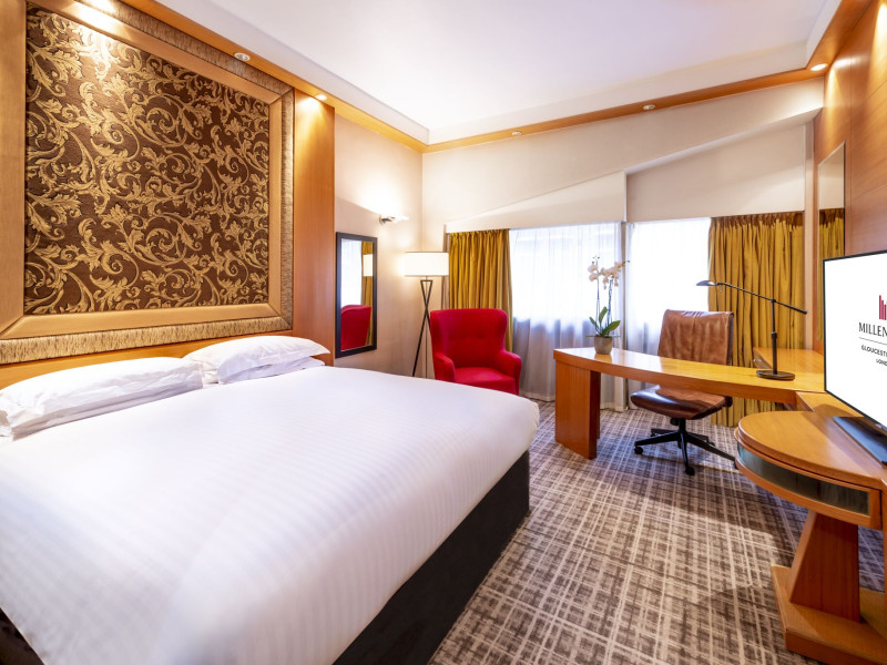 The 4-star Millennium Gloucester Hotel London is located in Kensington, 100 metres from Gloucester Road Tube Station and a short walk from the Victoria and Albert Museum. The hotel offers air-conditioned rooms with flat-screen satellite TVs, work desks, minibars, and en-suite bathrooms with free toiletries. Dining options include South West 7 (breakfast), Humphrey's Bar, and the Korean Grill Kensington (modern Singaporean cuisine). A fitness room is available. Nearby attractions include Kensington Palace Gardens, Hyde Park, the Natural History Museum, and the Royal Albert Hall (all within a 10-minute walk). The Grosvenor Casino is adjacent to the hotel. London Heathrow Airport is 45 minutes away via the London Underground. The Millennium Hotel and Conference Centre Gloucester London is a Tourist hotel. The nightlife/restaurants are easily accessible by taxi or bus from the hotel.