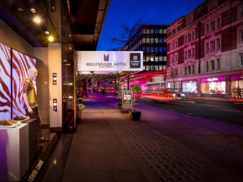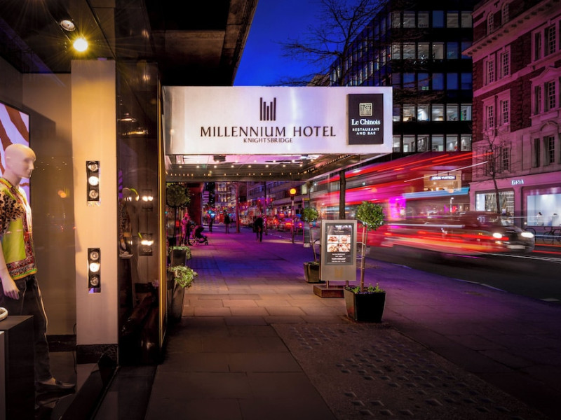 The 4-star Millennium Hotel Knightsbridge is elegantly situated on Sloane Street in the heart of London's fashionable Knightsbridge. Offering easy access to Buckingham Palace, Hyde Park, and numerous designer boutiques, the hotel is 150 metres from Knightsbridge Underground Station. Guest rooms are air-conditioned, feature international power sockets, satellite TV, and minibars; some offer city views. The hotel also boasts a stylish cocktail bar and a modern Chinese restaurant. A 44-minute drive from Heathrow Airport. The Millennium Hotel London Knightsbridge is a City hotel, Tourist hotel. The nightlife/restaurants are easily accessible by taxi or bus from the hotel.