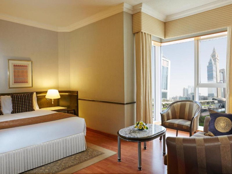 Camerele spațioase de la Crowne Plaza din Dubai au TV prin satelit și podea din lemn lustruit. Băile proprii sunt toate dotate cu cadă.