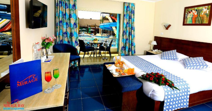 Camerele luminoase de la Mirage Bay Resort sunt decorate modern, cu o arhitectură inspirată de civilizația veche. Toate camerele au aer condiționat, iar unele camere sunt dotate cu balcon sau terasă. Toate camerele includ TV, telefon și cutie de valori.