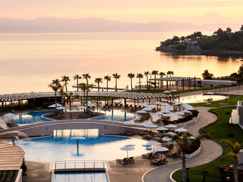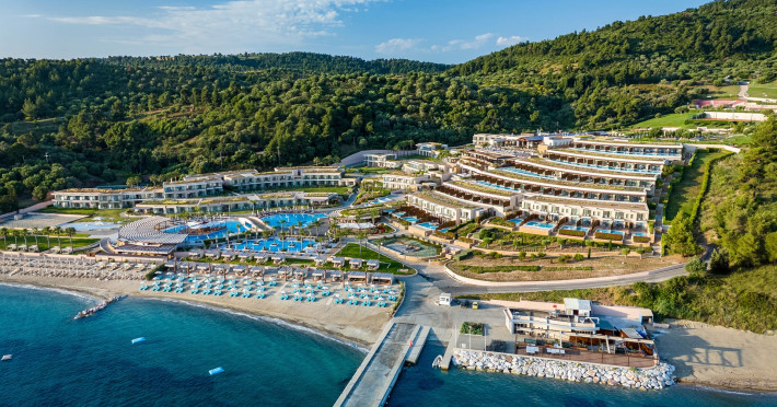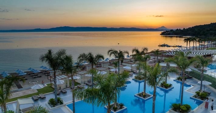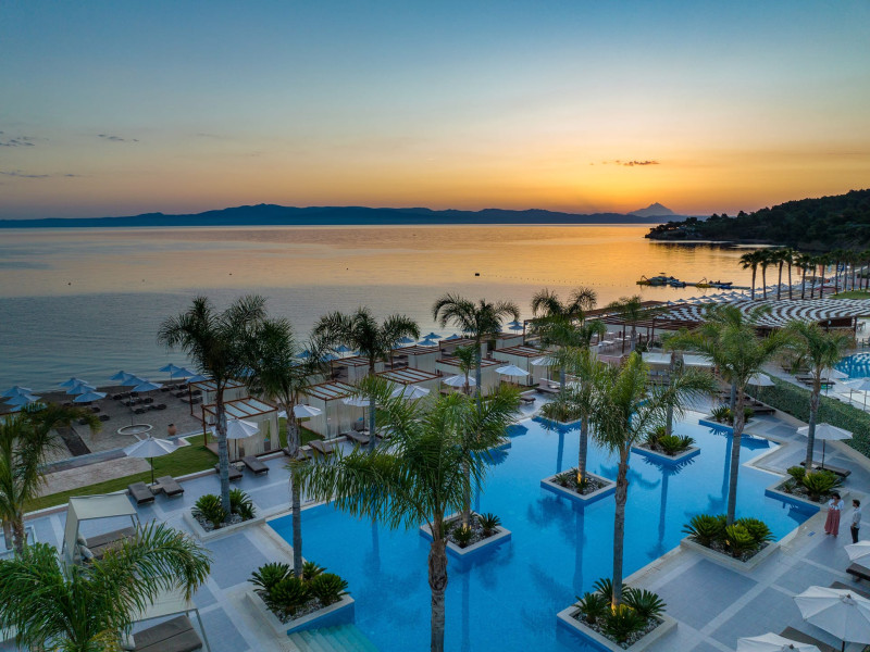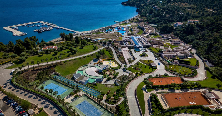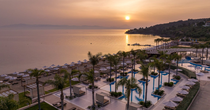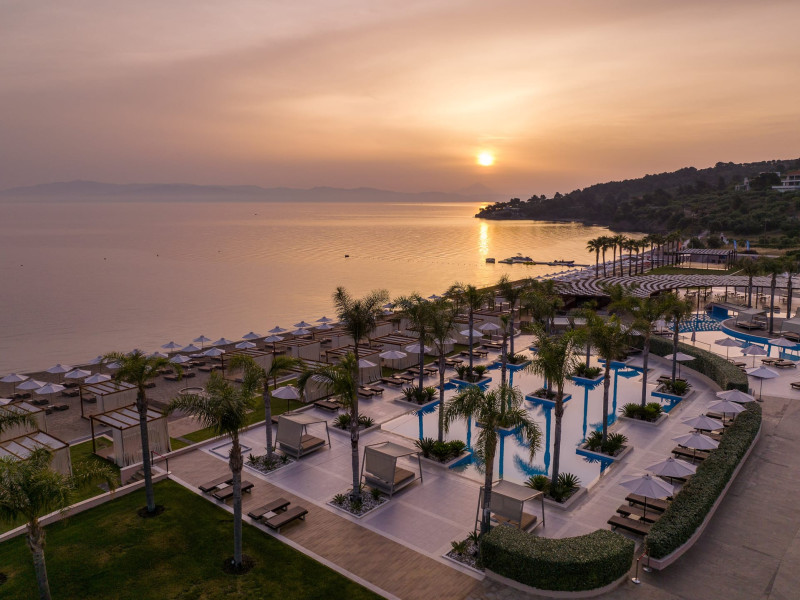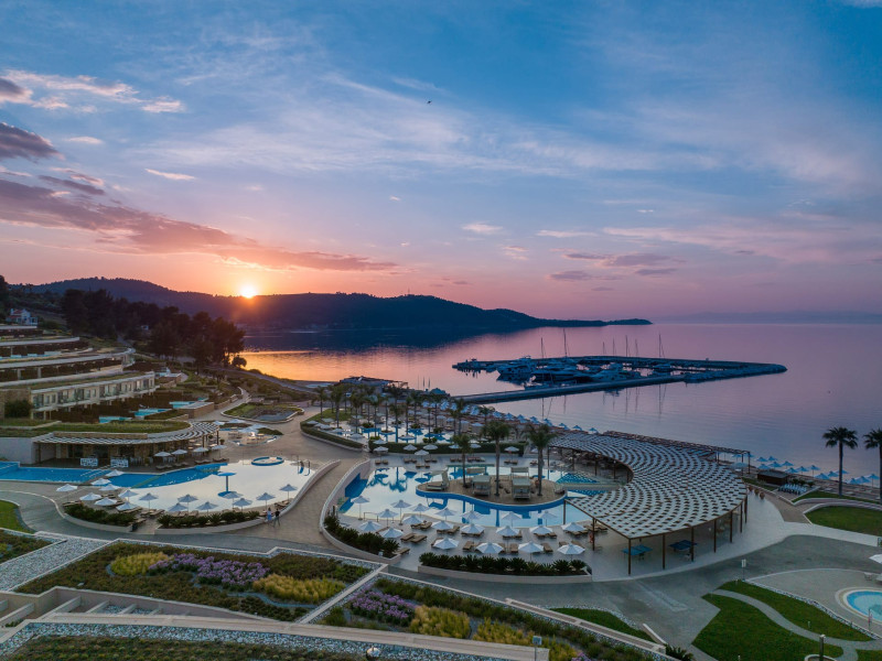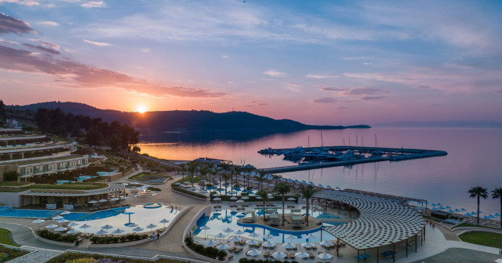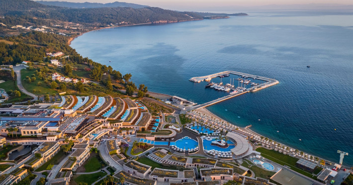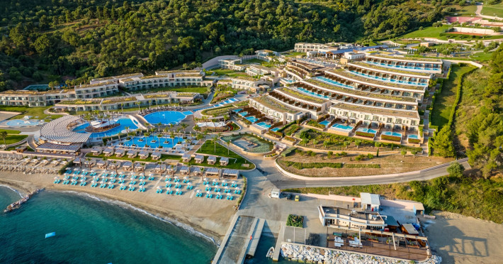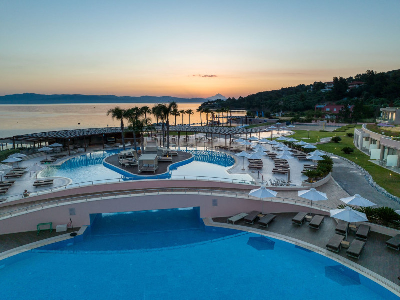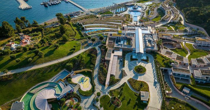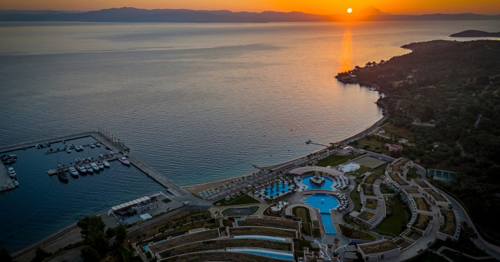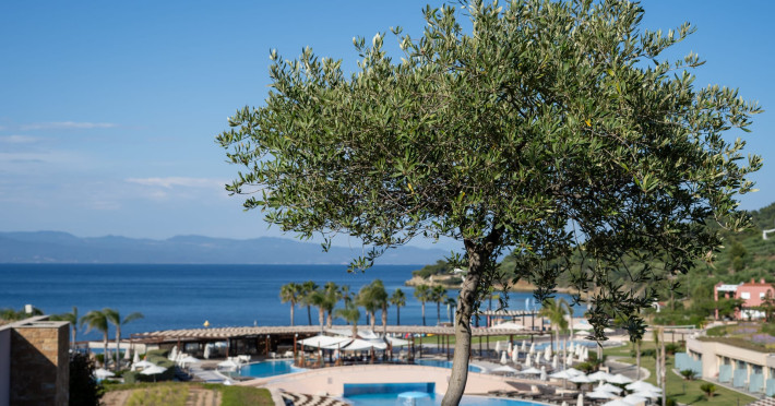 Located in the South-West coast of Kassandra-Halkidiki, in an area of exquisite natural beauty, forms more than just another luxury resort.Ιt constitutes a unique destination by featuring 286 elegant rooms and suites, 8 Thematic Restaurants, 4 Bars and by providing exclusive services such as Myrthia Thermal Spa with geothermal water from natural springs of the area and the sophisticated marina.Your home in HalkidikiBreathing deeply among ancient olive trees, novel venues and graceful gardens, gazing in wonder at the unrivalled Aegean Sea before you, basking in the Greek Summer at a place where luxury springs naturally, and beauty flows right into you; this is the Miraggio welcome, an experience you’ve been longing for, and now, it’s time to live it!Discover your paradise under the Greek skyImagine overlooking the azure sea sparkling from every angle you stand. Imagine sinking your toes in the golden warm sand. Imagine feeling carefree, and free to self-care. Even so, there are places that cannot be fully framed in pictures. It is only the soul that can genuinely recognize their bliss, the unquestionable sense of reward emerging from their land, their skyline and the smile of their people.Miraggio Thermal Spa Resort is one of them, a Greek Eden of unpretentious comfort lying amphitheatrically at the tip of the Kassandra peninsula, Kanistro, Paliouri and overlooking the second “leg” of Halkidiki and Mount Athos.
