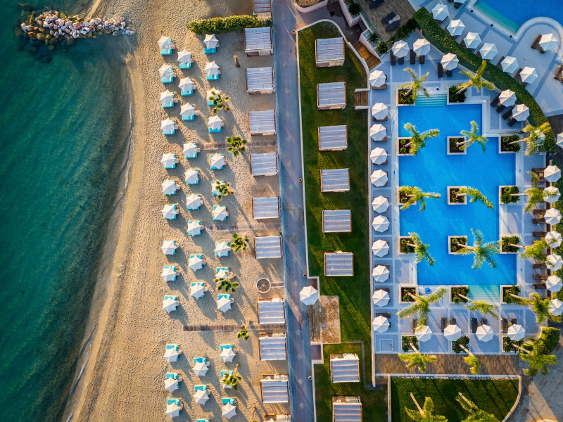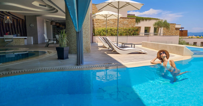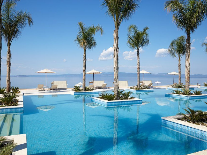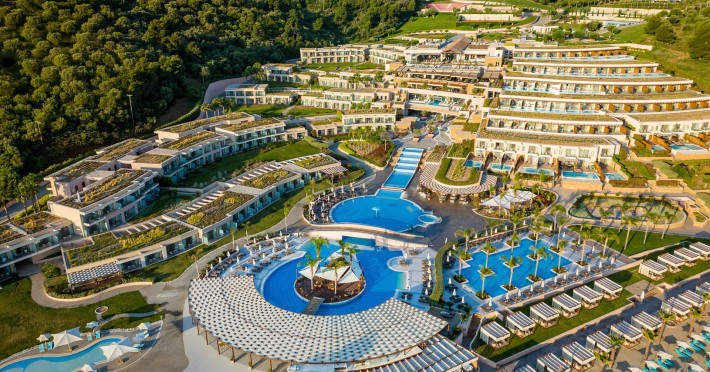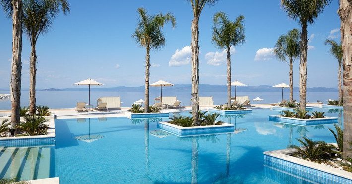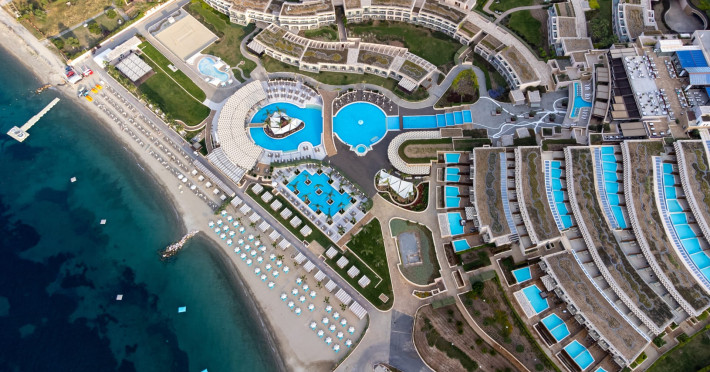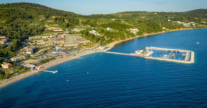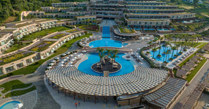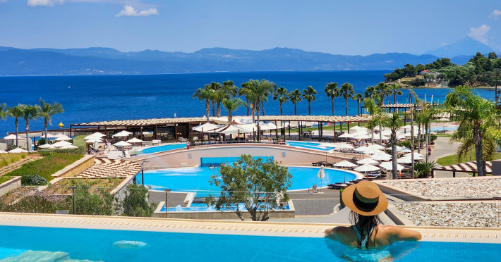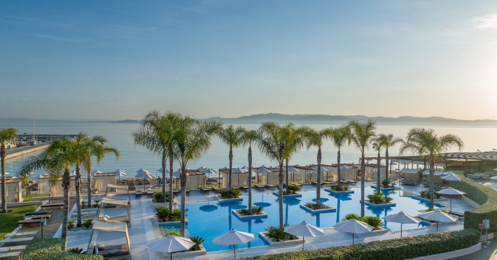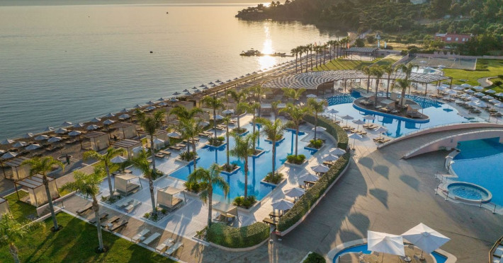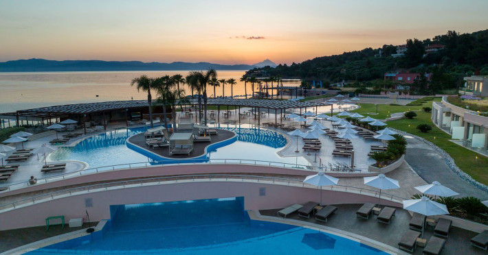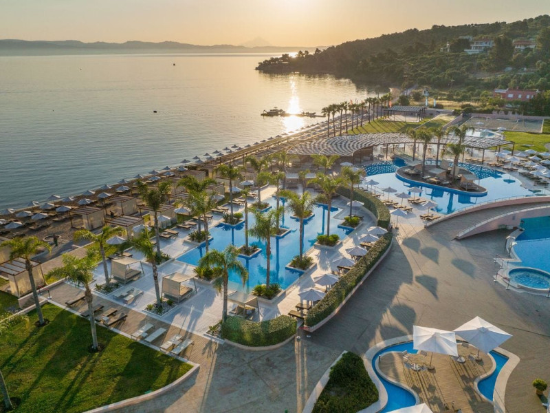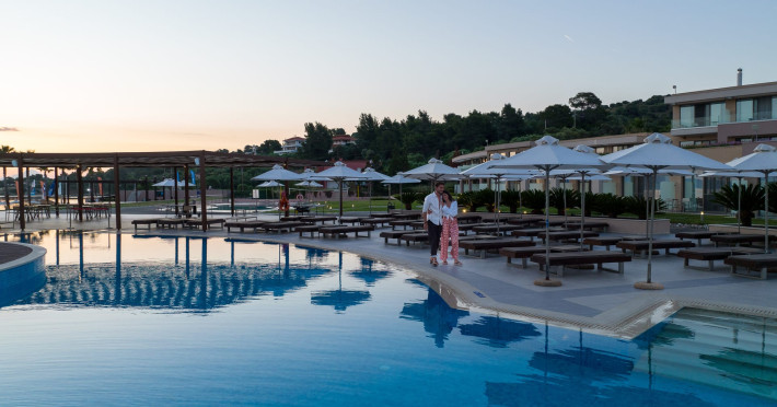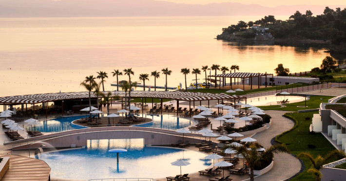 Located in the South-West coast of Kassandra-Halkidiki, in an area of exquisite natural beauty, forms more than just another luxury resort.Ιt constitutes a unique destination by featuring 286 elegant rooms and suites, 8 Thematic Restaurants, 4 Bars and by providing exclusive services such as Myrthia Thermal Spa with geothermal water from natural springs of the area and the sophisticated marina.Your home in HalkidikiBreathing deeply among ancient olive trees, novel venues and graceful gardens, gazing in wonder at the unrivalled Aegean Sea before you, basking in the Greek Summer at a place where luxury springs naturally, and beauty flows right into you; this is the Miraggio welcome, an experience you’ve been longing for, and now, it’s time to live it!Discover your paradise under the Greek skyImagine overlooking the azure sea sparkling from every angle you stand. Imagine sinking your toes in the golden warm sand. Imagine feeling carefree, and free to self-care. Even so, there are places that cannot be fully framed in pictures. It is only the soul that can genuinely recognize their bliss, the unquestionable sense of reward emerging from their land, their skyline and the smile of their people.Miraggio Thermal Spa Resort is one of them, a Greek Eden of unpretentious comfort lying amphitheatrically at the tip of the Kassandra peninsula, Kanistro, Paliouri and overlooking the second “leg” of Halkidiki and Mount Athos.