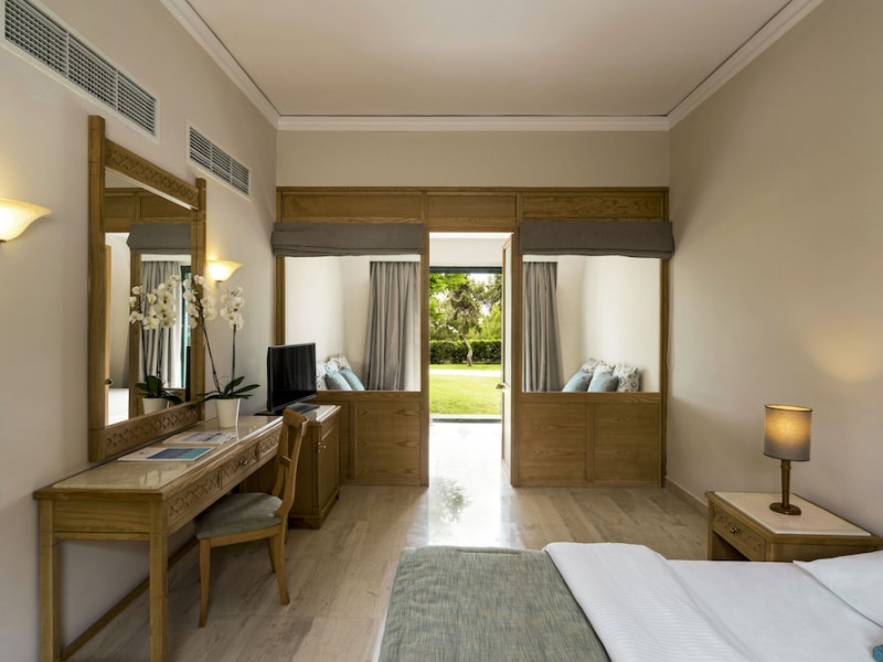 Facilities and services include air-conditioning/heating, an ATM machine in the lobby, a bicycling service (at extra charge), a central safe deposit box, a library, lifts, Outdoor parking area, 24-hour reception, Shopping arcade with mini market, outdoor theater, Beach/pool towels, Bike rental & services on site (at extra charge), concierge, daily bath linen change, towel change (upon request), Florist on call (at extra charge), Free airport transfer (extra charge), Guest parking, Hairdresser, laundry (extra charge), luggage storage, doctor on call (extra charge), multilingual staff, Postal service, Rent a car desk, Room service upon request (at extra charge), Security 24h, Service around the beach & pools and Transfers (at extra charge).Rooms feature air conditioning, a balcony/terrace, a flat-screen TV, a minibar, and soundproofing.The Ultra All-Inclusive Concept includes all meals (breakfast, lunch, dinner, and snacks) and mealtime drinks such as soft drinks, beer, wine, water, and alcoholic drinks, all of local brands. Drinks are served from morning until late evening (approx. until 22.00-24.00 hrs.). Opening times vary between different hotels. In certain hotels, the activities program is also included.Note:- Some of the above facilities may be closed due to weather/seasonal conditions.Address: Kiotari, 85109 Kiotari, Rhodes, Greece.