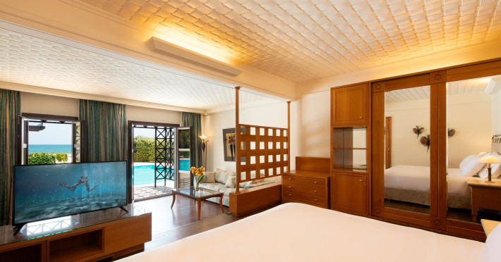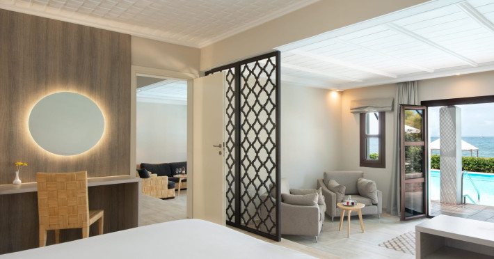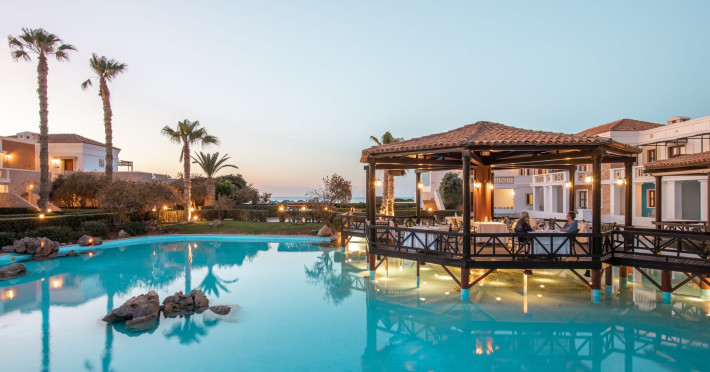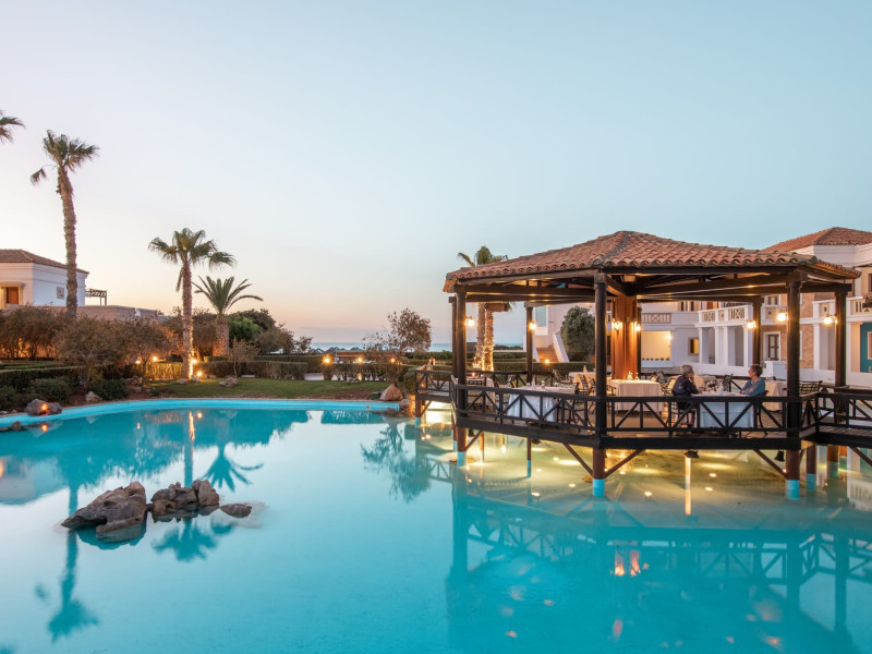 Mitsis Royal Mare features 385 luxurious rooms, 7 restaurants and 4 bars spread throughout the resort, a state-of-the-art and multi-awarded Thalasso Centre that can offer 69 therapies in parallel, 29 secluded pools, as well as a variety of concierge & transfer services. Over 500 palm trees, large open-air areas, unique services and a wide selection of tastes, compose an amazing holiday scenery.