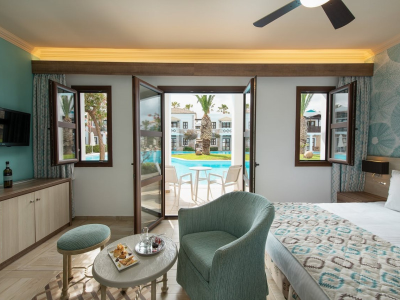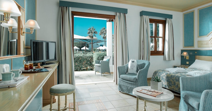 Facilities and services include 24-hour reception, air conditioning, babysitting services (extra charge), car parking, children's play area, concierge facilities, conference/banquet facilities (extra charge), dry cleaning (extra charge), free Wi-Fi, gym/fitness facilities (extra charge), laundry facilities (extra charge), massage (extra charge), multilingual staff, pools, restaurant, sauna (extra charge), and shuttle services (extra charge).Rooms feature a minibar (extra charge), TV, telephone, air conditioning, safe, wireless Internet access, bathroom, slippers, hairdryer, and balcony/terrace.Please note that some of the above facilities may be closed due to weather/seasonal conditions.In case of choosing the option of all inclusive:The all-inclusive concept includes all meals (breakfast, lunch, dinner, and snacks) and mealtime drinks such as soft drinks, beer, wine, water, and alcoholic drinks, all of local brands. Drinks are served from morning until late evening (approx. until 22.00-24.00 hrs.). Opening times vary between different hotels. In certain hotels the activities program is also included.Address: Limenas Hersonissou, 70014 Crete, Greece.